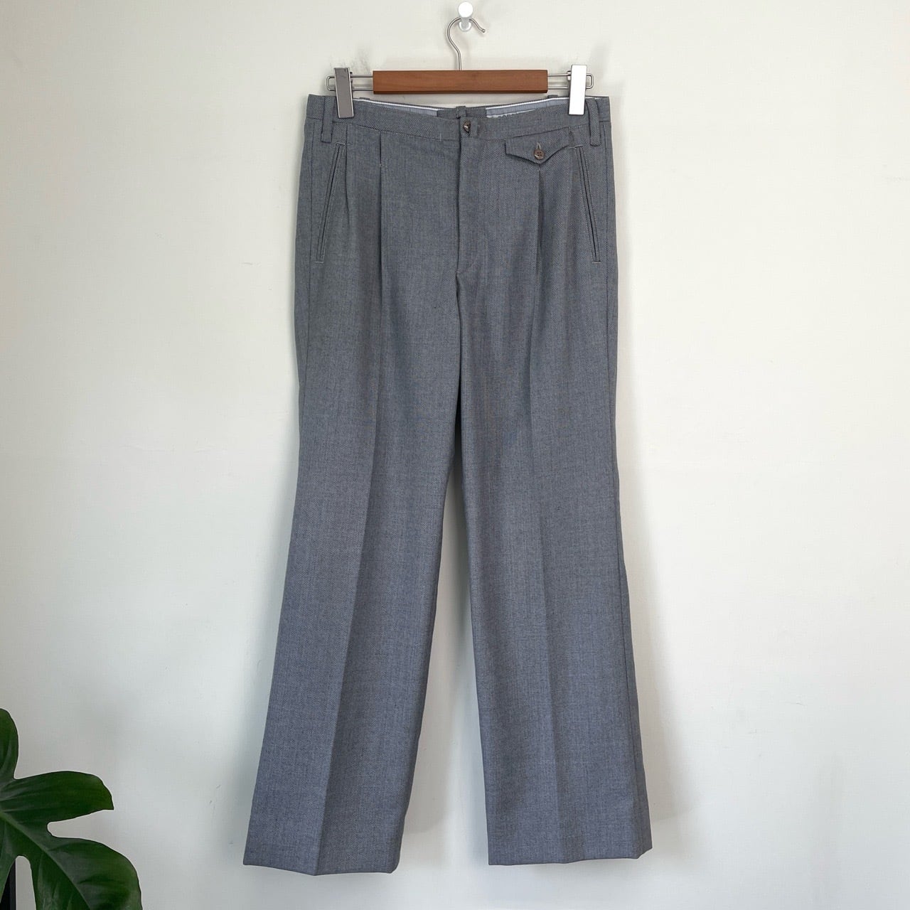 70s ユーロ ツータック フレアスラックス グレー ヴィンテージ 古着 フレアパンツ ブーツカット バギー 70年代 ビンテージ W31 26040412