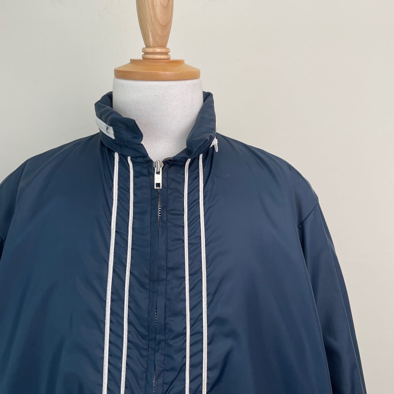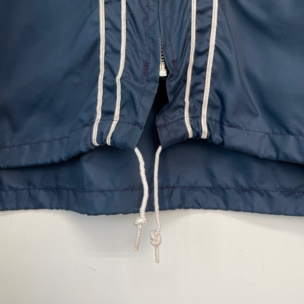 70s 80s ナイロンジャケット ライン入り スタンドカラー 紺 ネイビー ヴィンテージ 古着 ジップアップ ブルゾン 70年代 80年代 ビンテージ 26040421