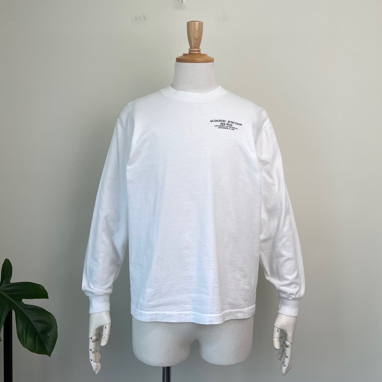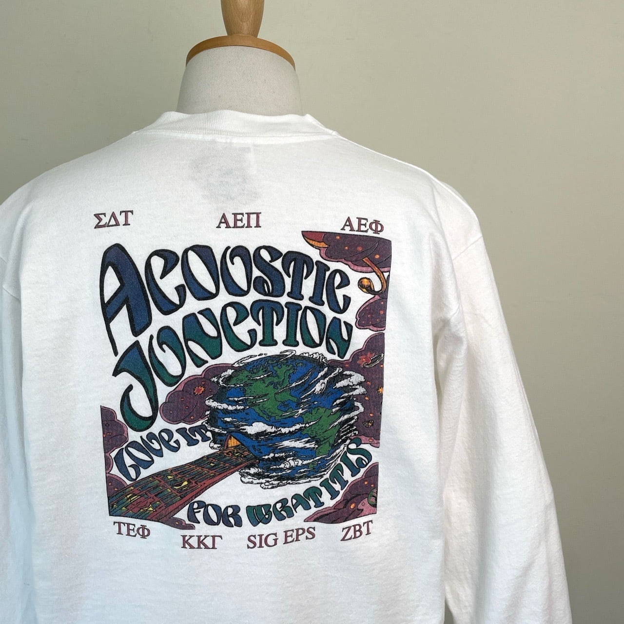 90s USA製 アート バックプリント ロンT 長袖Tシャツ ヴィンテージ 古着 白 ホワイト シングルステッチ 地球 カレッジ 1994 90年代 ビンテージ M 26040422