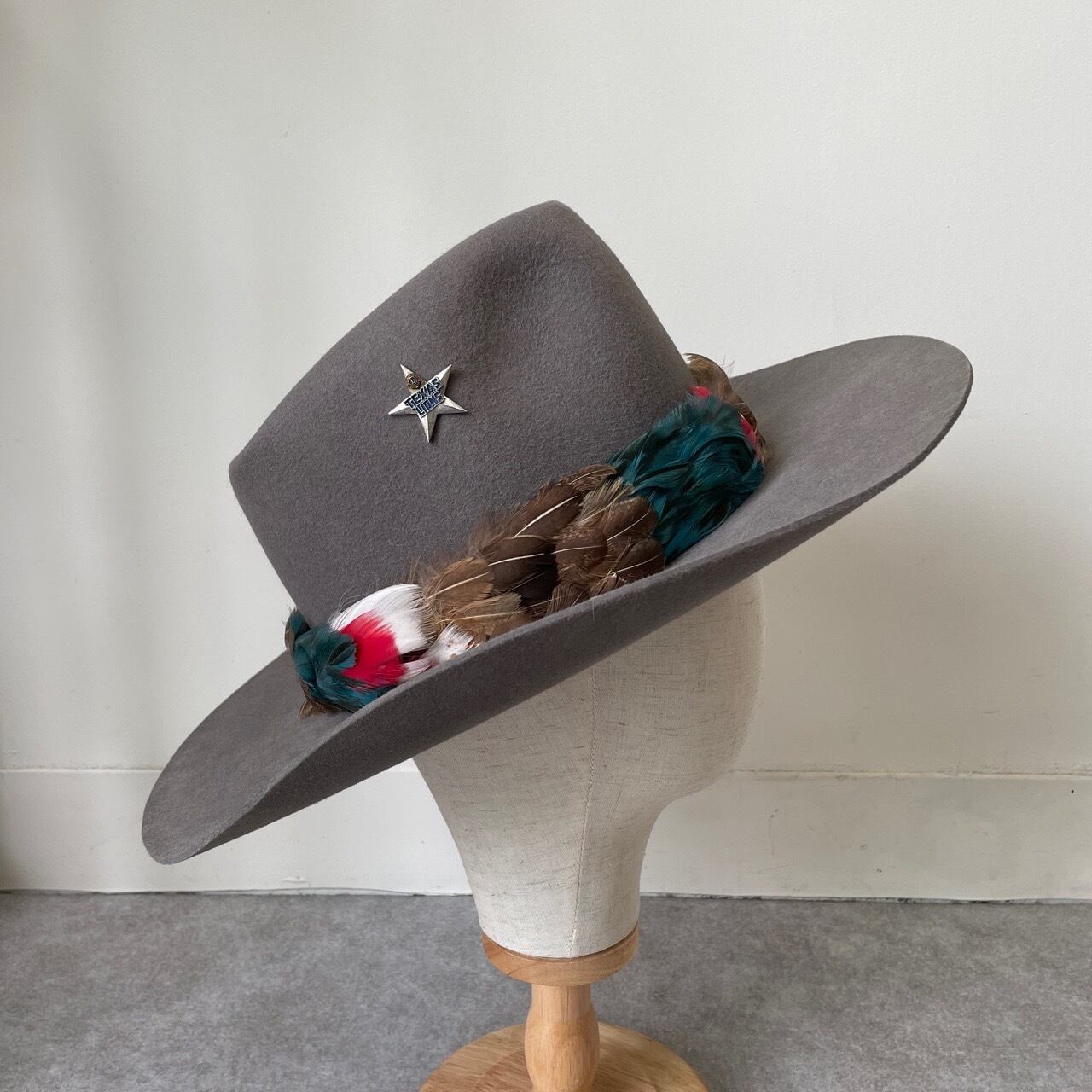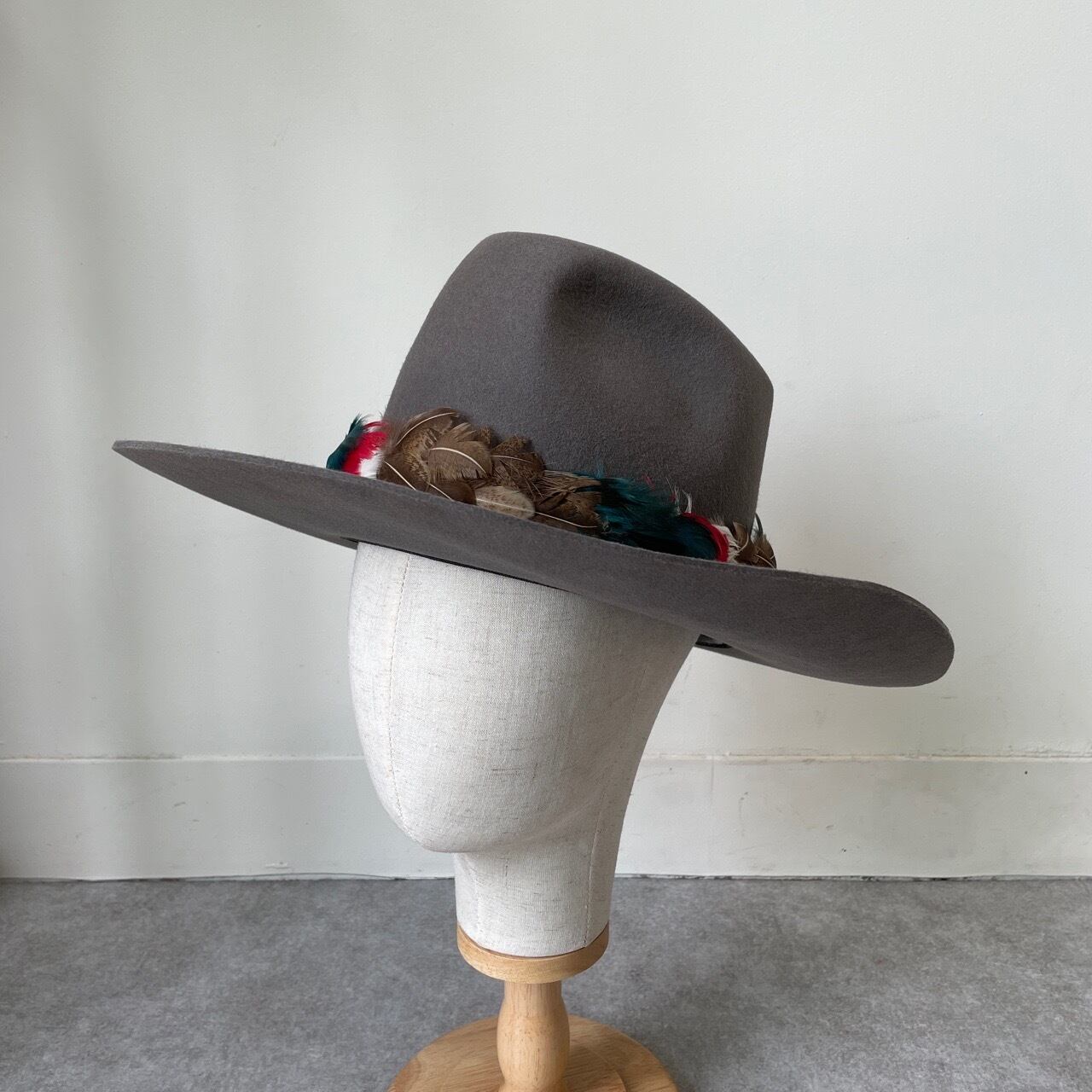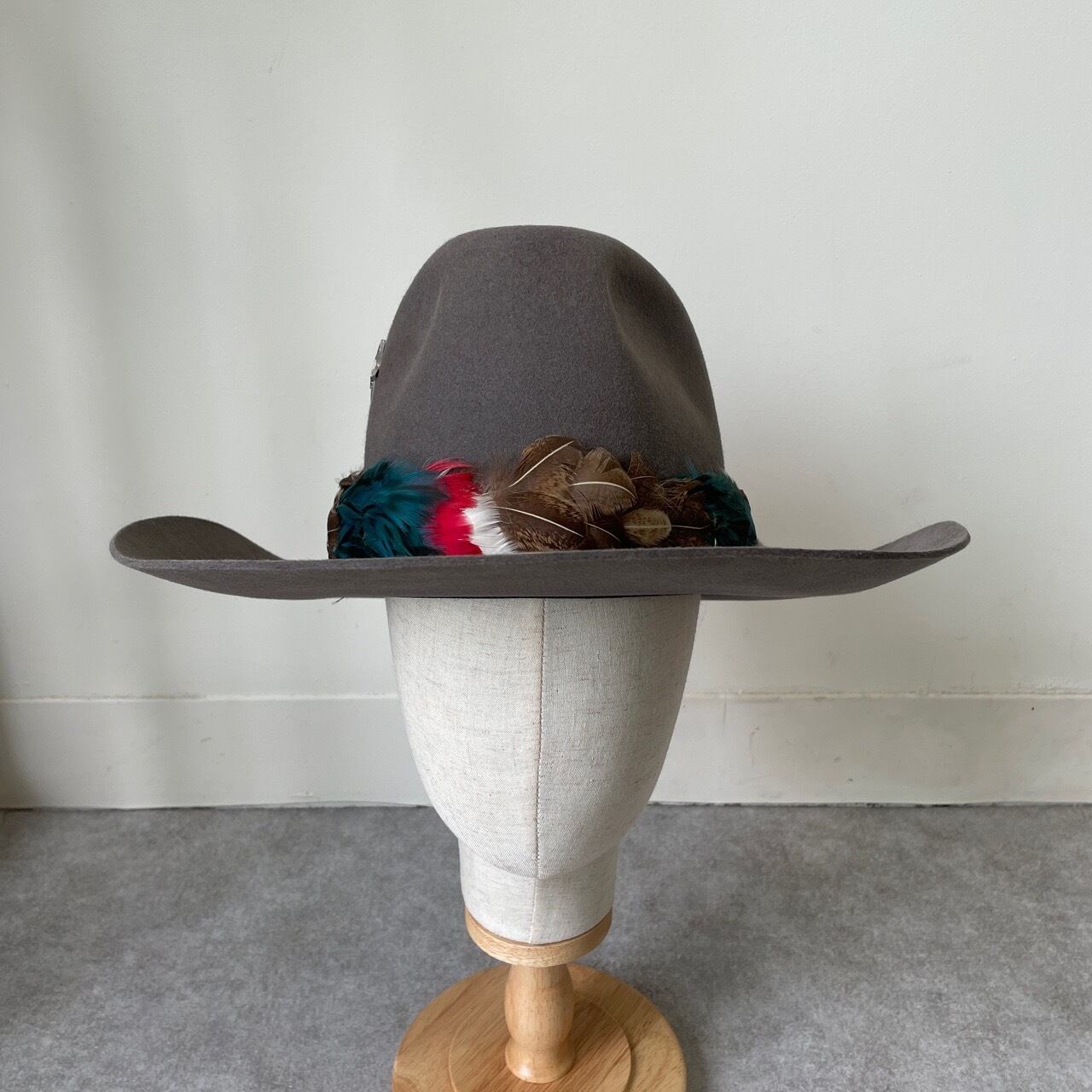 60s 70s フェルトハット グレー 7 1/8 ヴィンテージ フェドラハット ウエスタン カウボーイ ビーバーフェルト 帽子 60年代 70年代 ビンテージ テンガロンハット 26041001