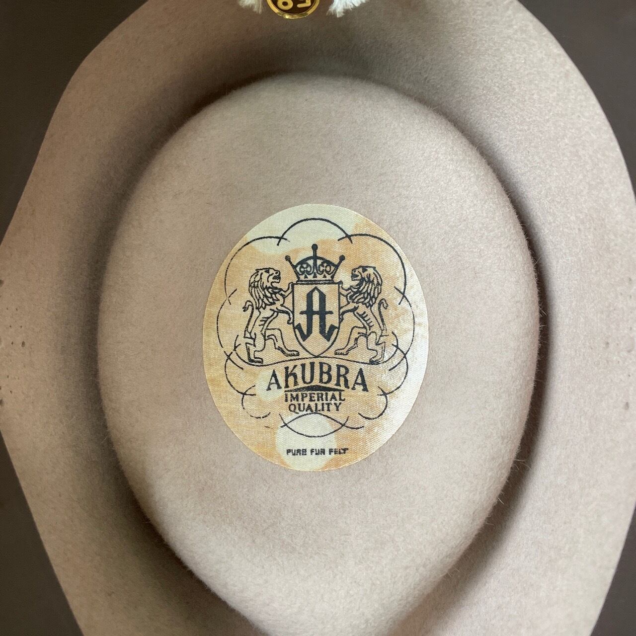 90s オーストラリア製 AKUBRA フェルトハット ベージュ 58 ヴィンテージ フェドラハット ウエスタン カウボーイ 帽子 90年代 ビンテージ 26041002