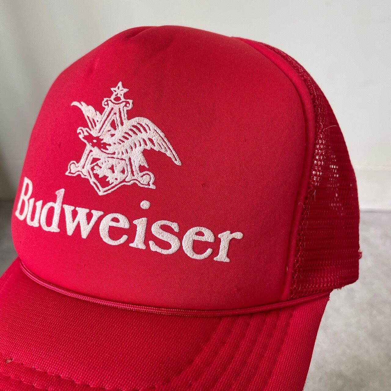 90s Budweiser バドワイザー 企業ロゴ キャップ ヴィンテージ ビール 赤 レッド 90年代 アメカジ ビンテージ トラッカーキャップ メッシュキャップ 26041005