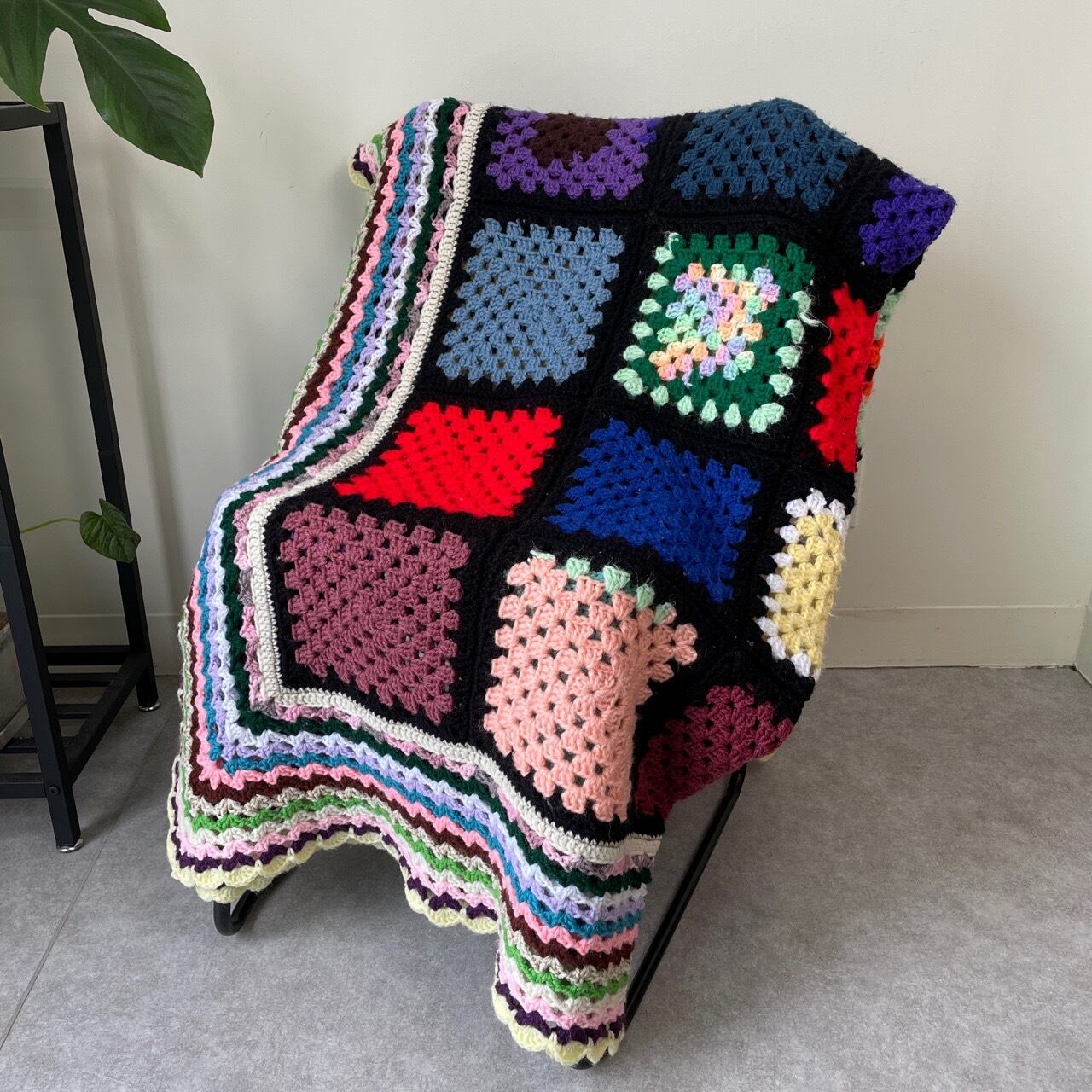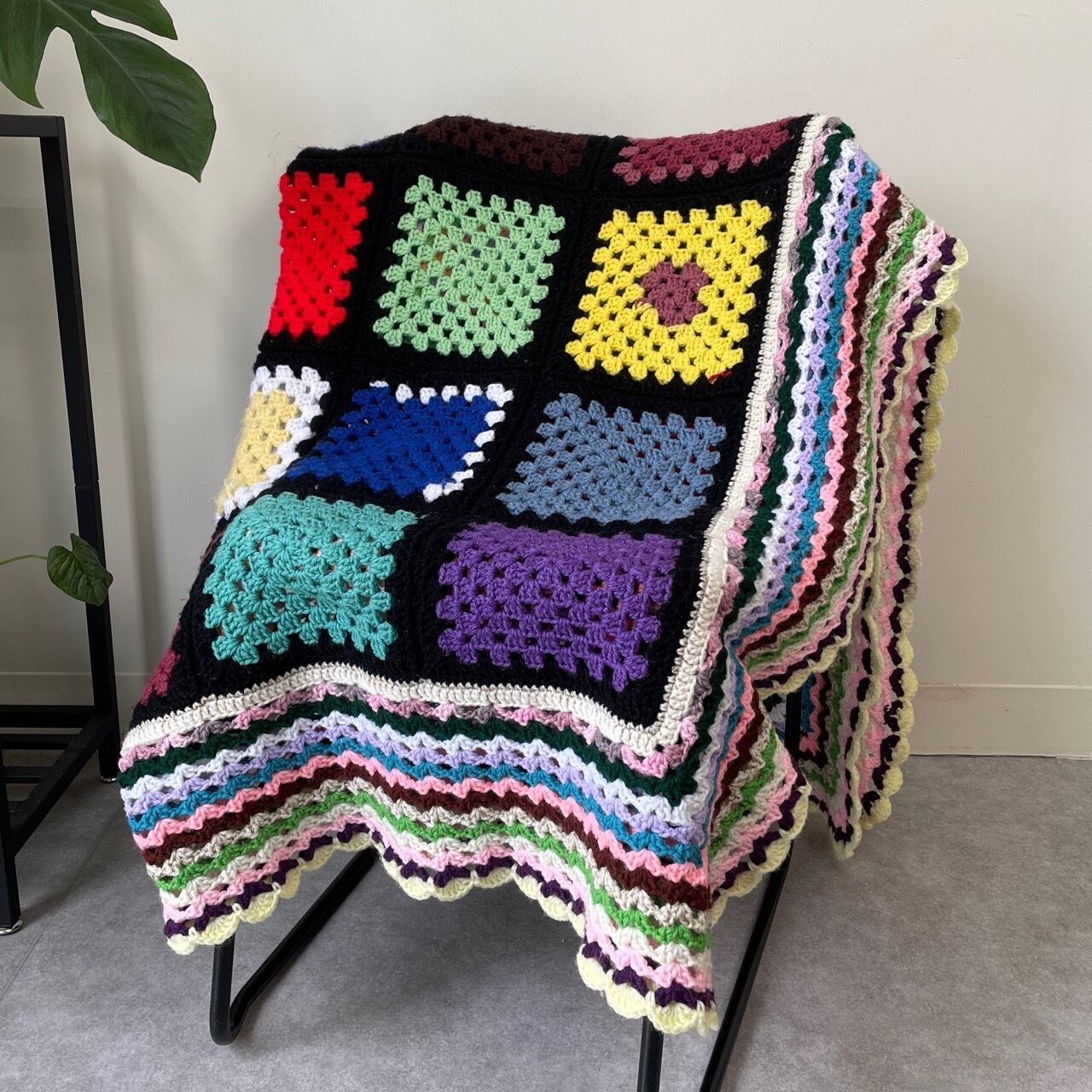 USヴィンテージ グラニースクエア ブランケット カラフル レトロ ラグ インテリア アメリカ ビンテージ ハンドメイド マルチカバー かぎ針編み ニット 26041009