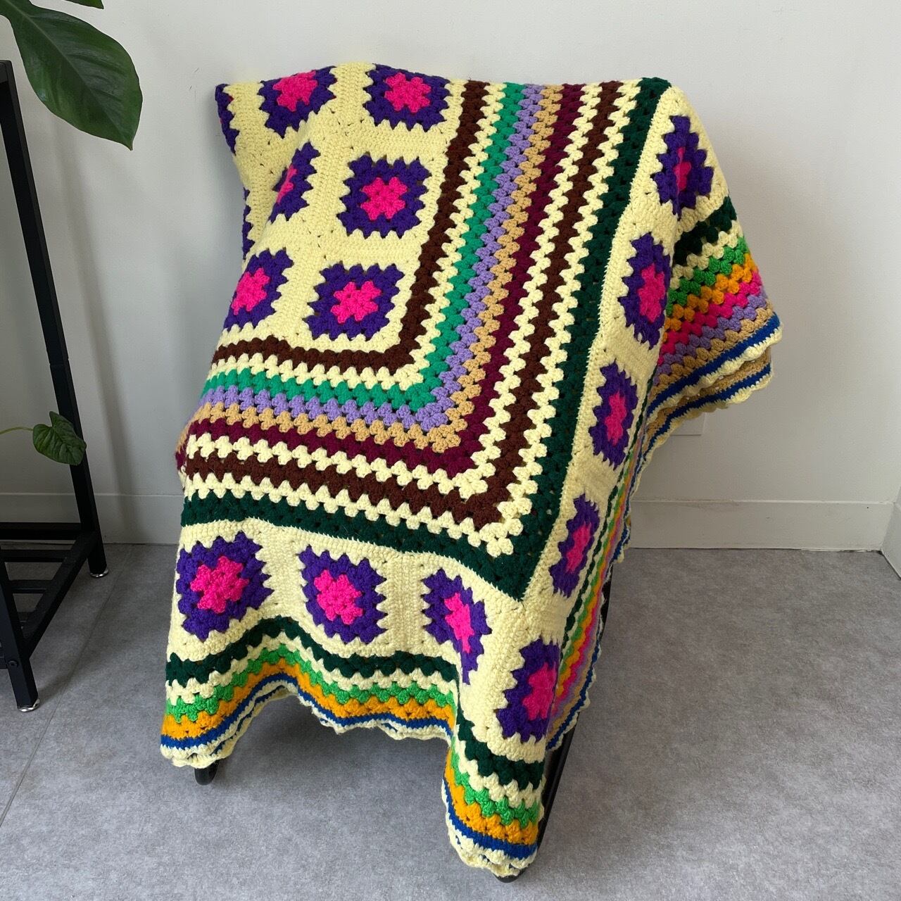 USヴィンテージ グラニースクエア ブランケット カラフル レトロ ラグ インテリア アメリカ ビンテージ ハンドメイド マルチカバー かぎ針編み ニット 26041010