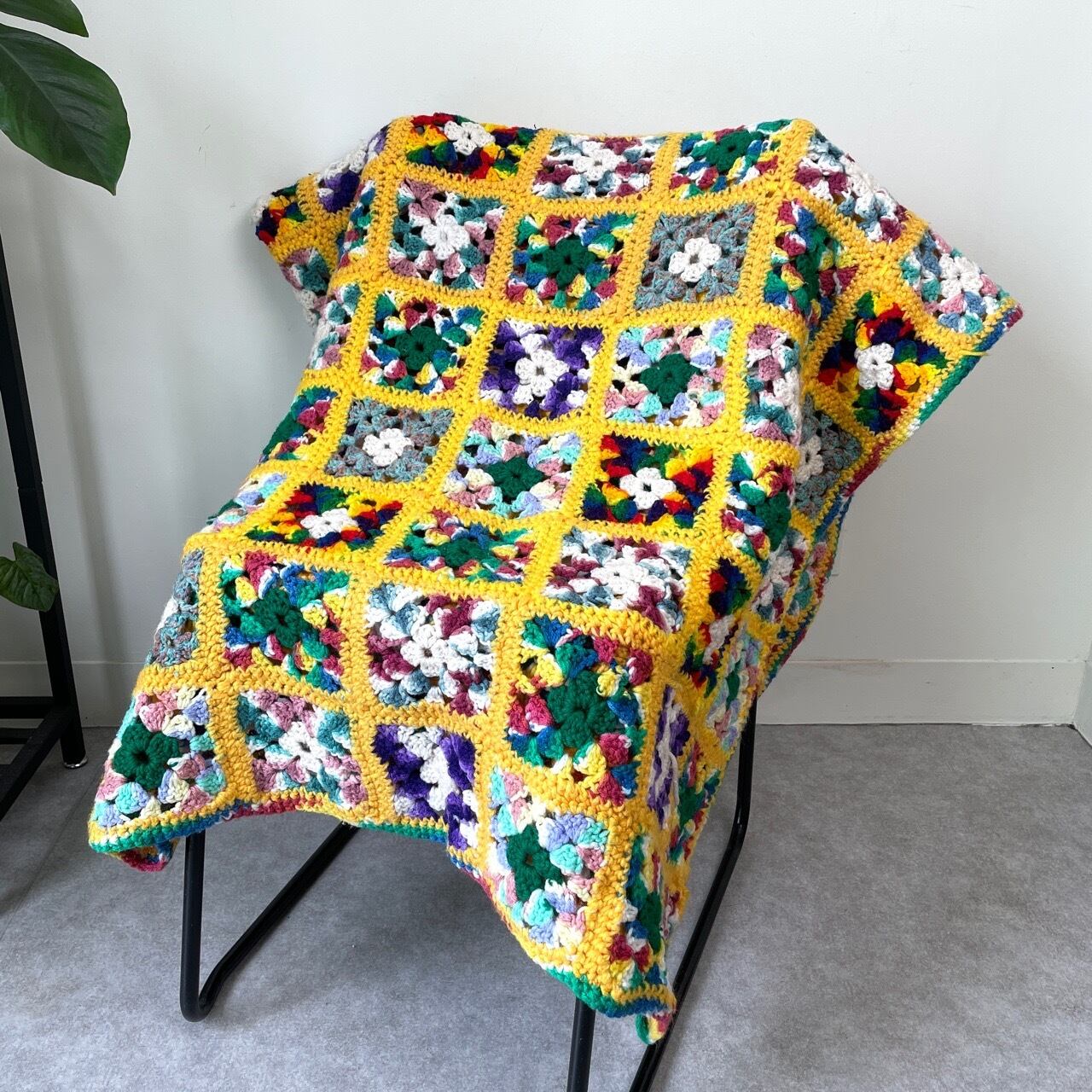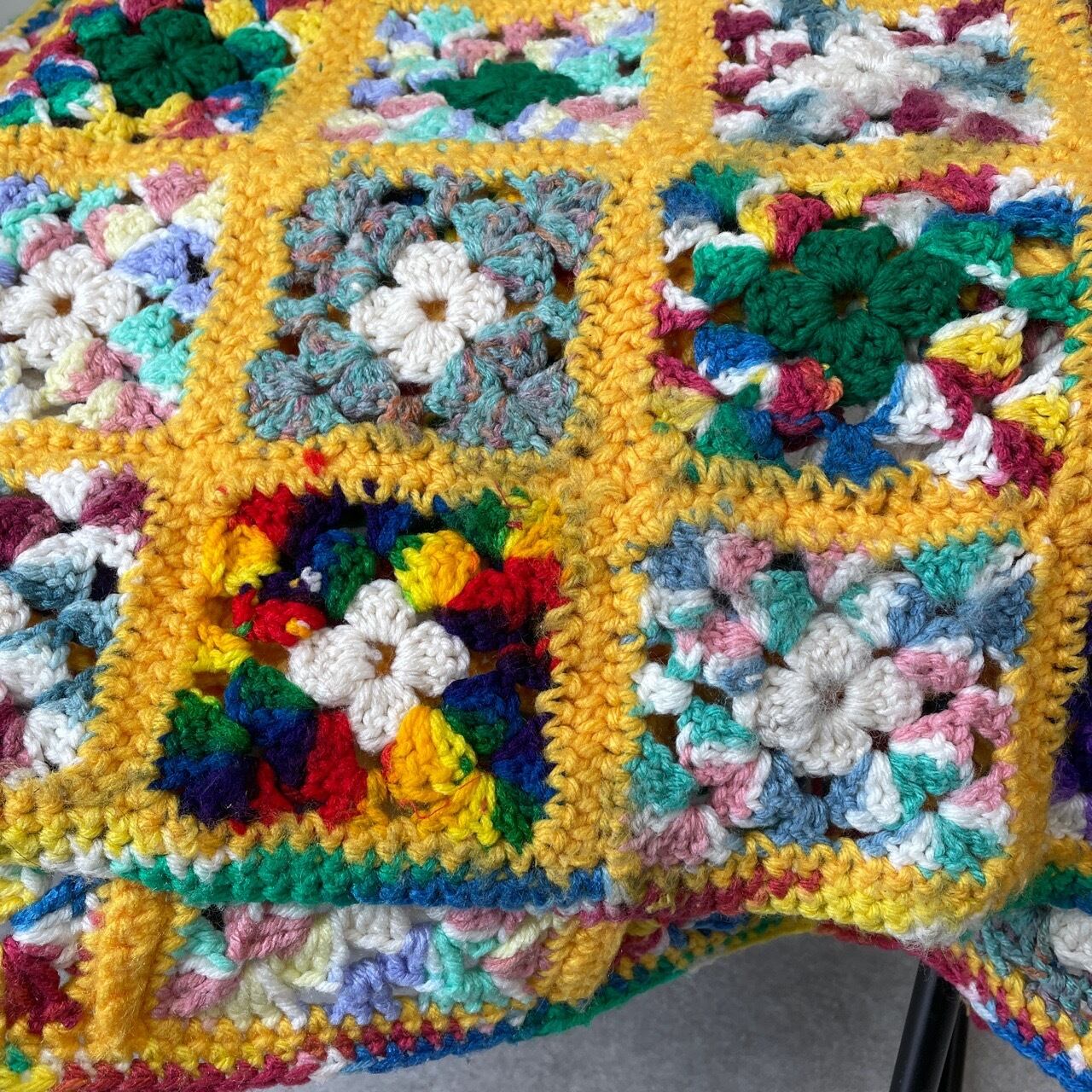 USヴィンテージ グラニースクエア ブランケット カラフル レトロ 花柄 ラグ インテリア アメリカ ビンテージ ハンドメイド マルチカバー かぎ針編み ニット 26041012