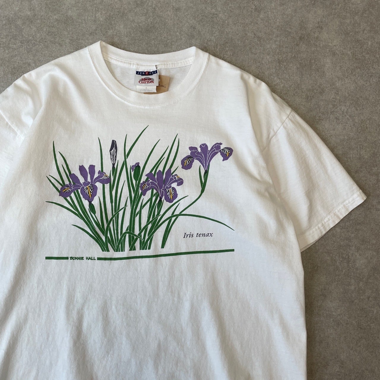 90s 00s アイリス フラワーTシャツ 花 アート ヴィンテージ 古着 短丈 BONNIE HALL 白 ホワイト 90年代 ビンテージ M 26042009
