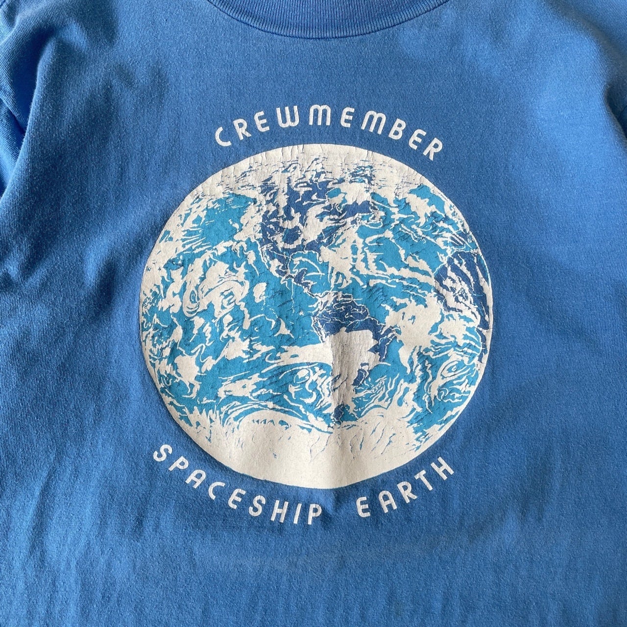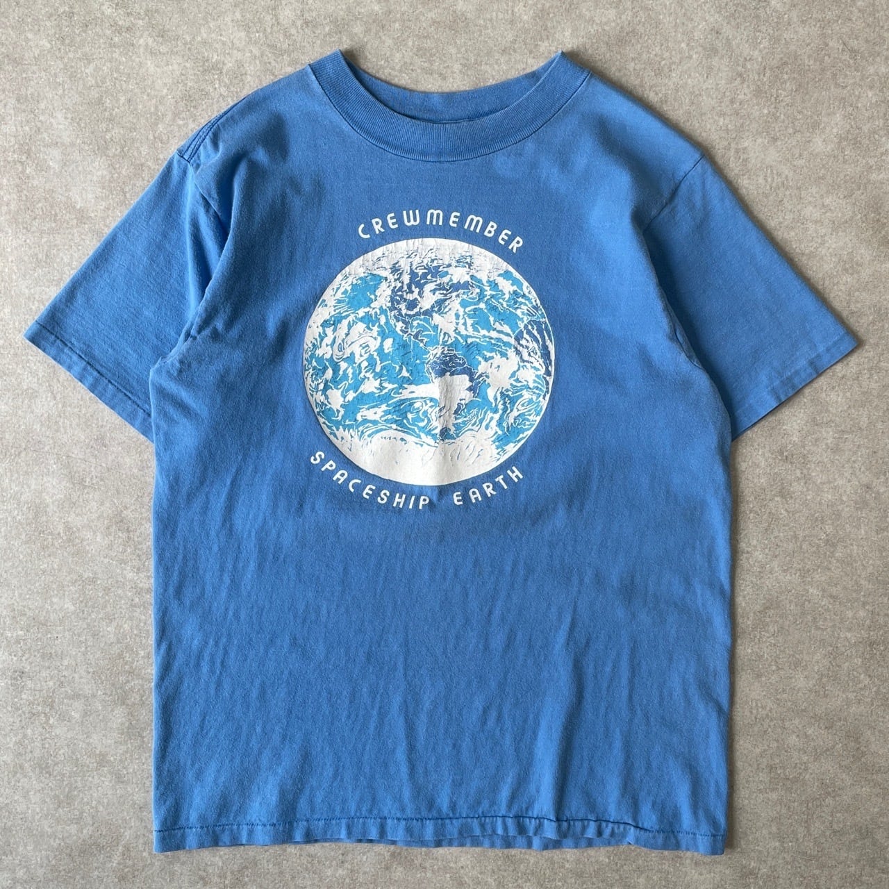 80s 90s USA製 CREWMEMBER SPACESHIP EARTH アートTシャツ ヴィンテージ シングルステッチ 古着 青 ブルー 地球 天体 宇宙 80年代 90年代 ビンテージ L 26042411