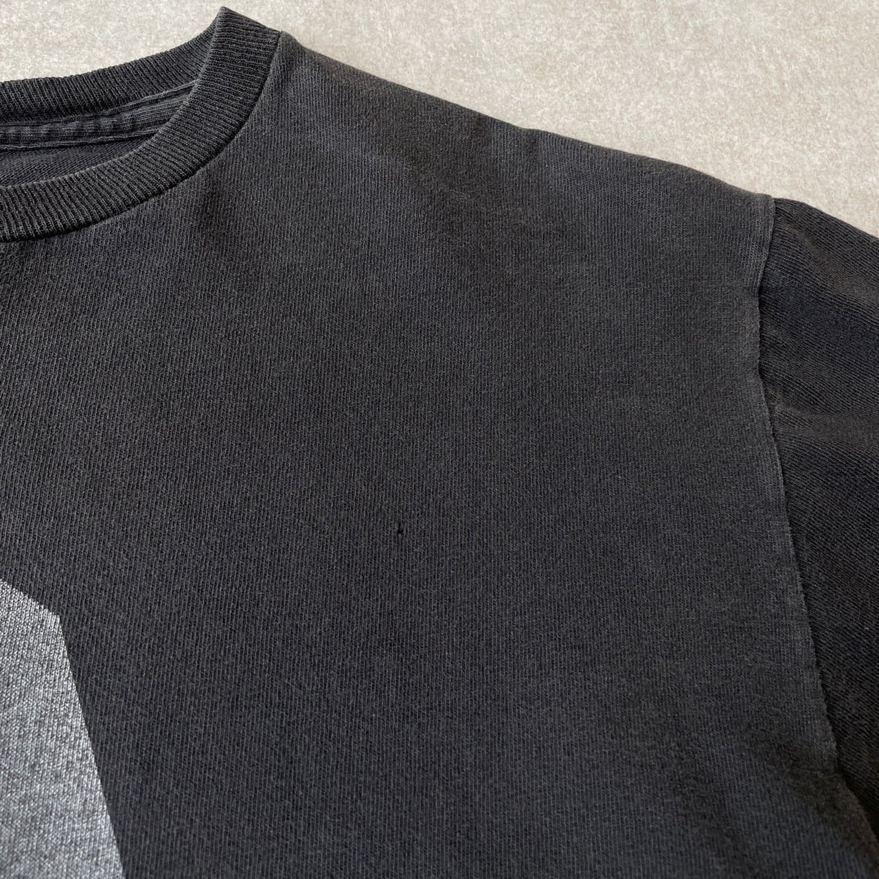 90s HUGO BOSS ピラミッドロゴ Tシャツ モード ヴィンテージ シングルステッチ 黒 ブラック 短丈 ヒューゴボス フェード 90年代 ビンテージ 古着 26042504