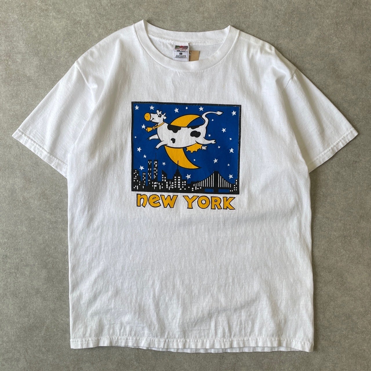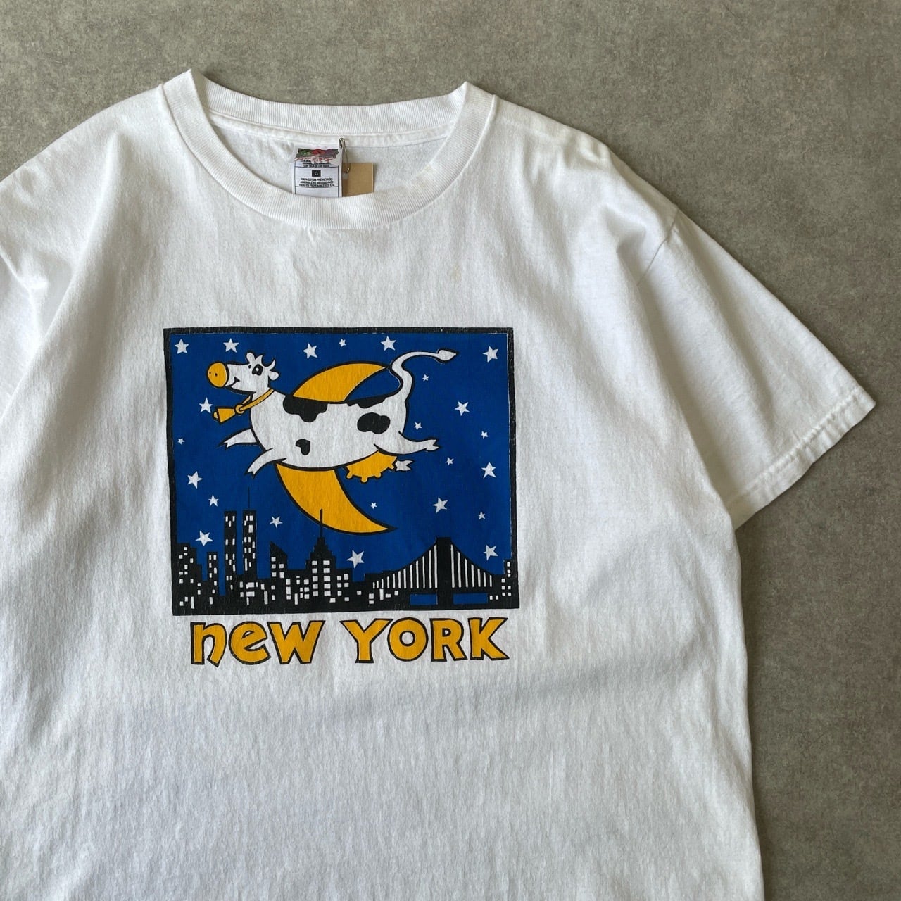 90s NEW YORK 牛 アートTシャツ ヴィンテージ アニマル 動物 ニューヨーク 古着 白 ホワイト 90年代 ビンテージ L 26042702