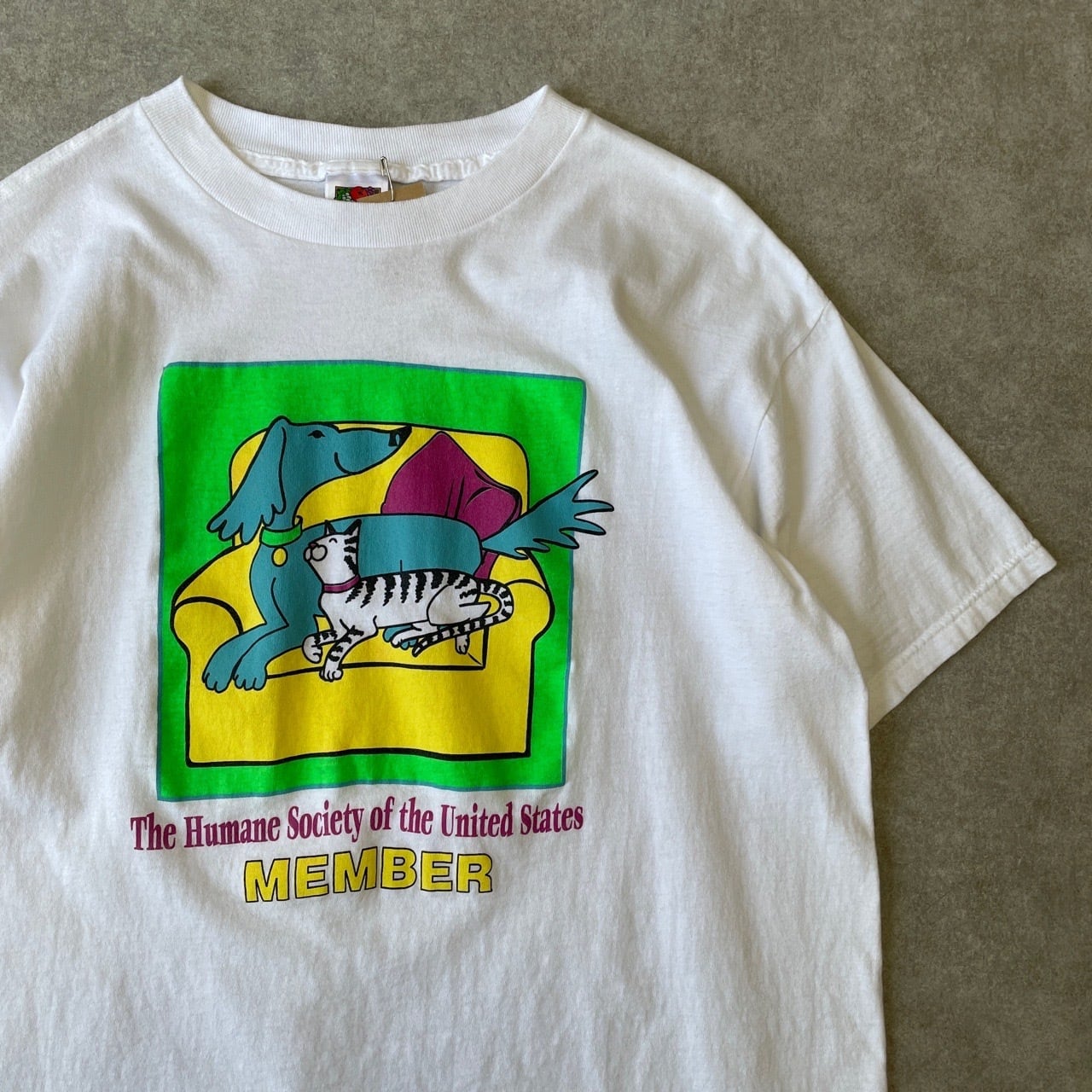 90s 00s Humane Society 犬 猫 アニマルTシャツ ヴィンテージ イヌ ネコ ねこ 動物 アート 白 ホワイト 古着 90年代 ビンテージ L 26042709