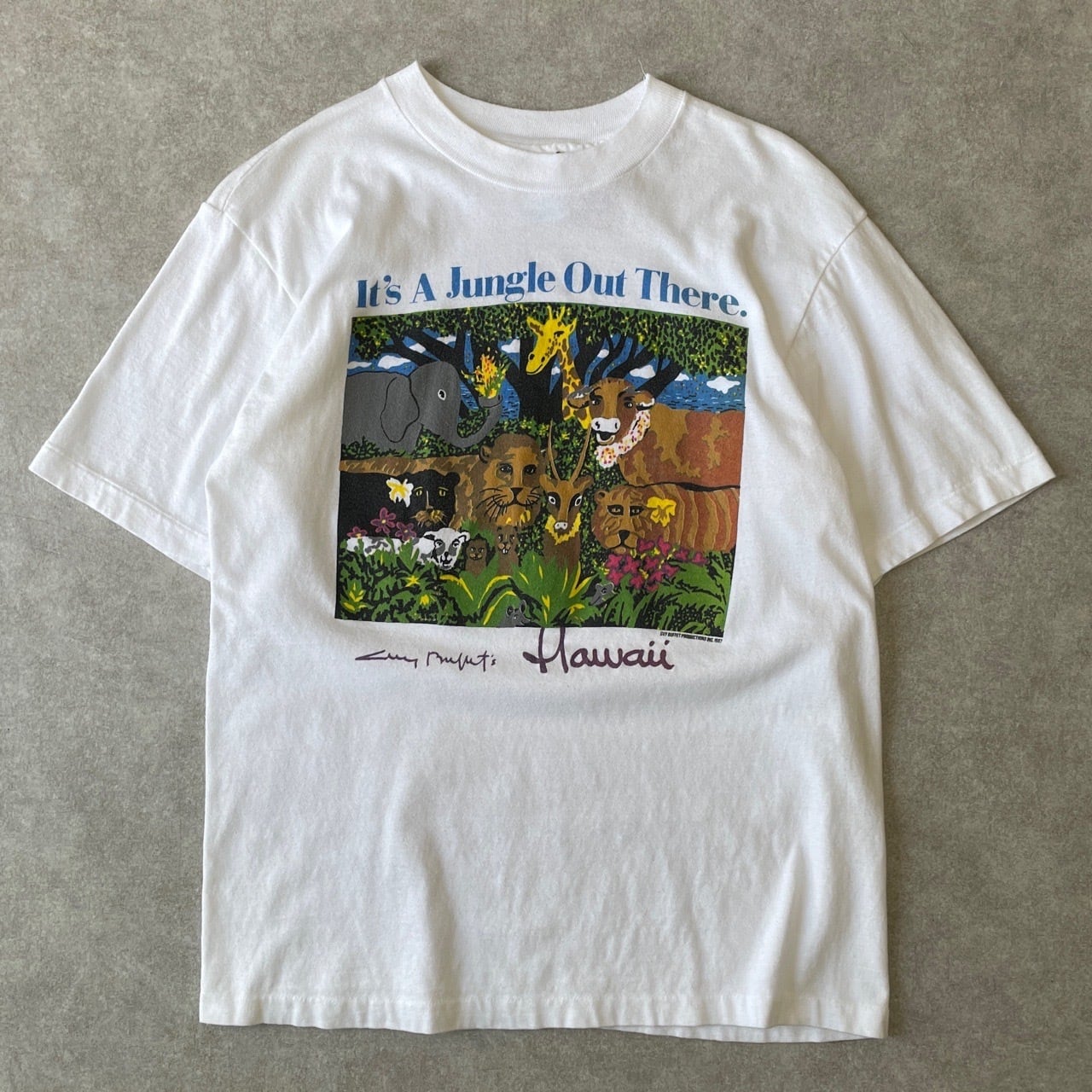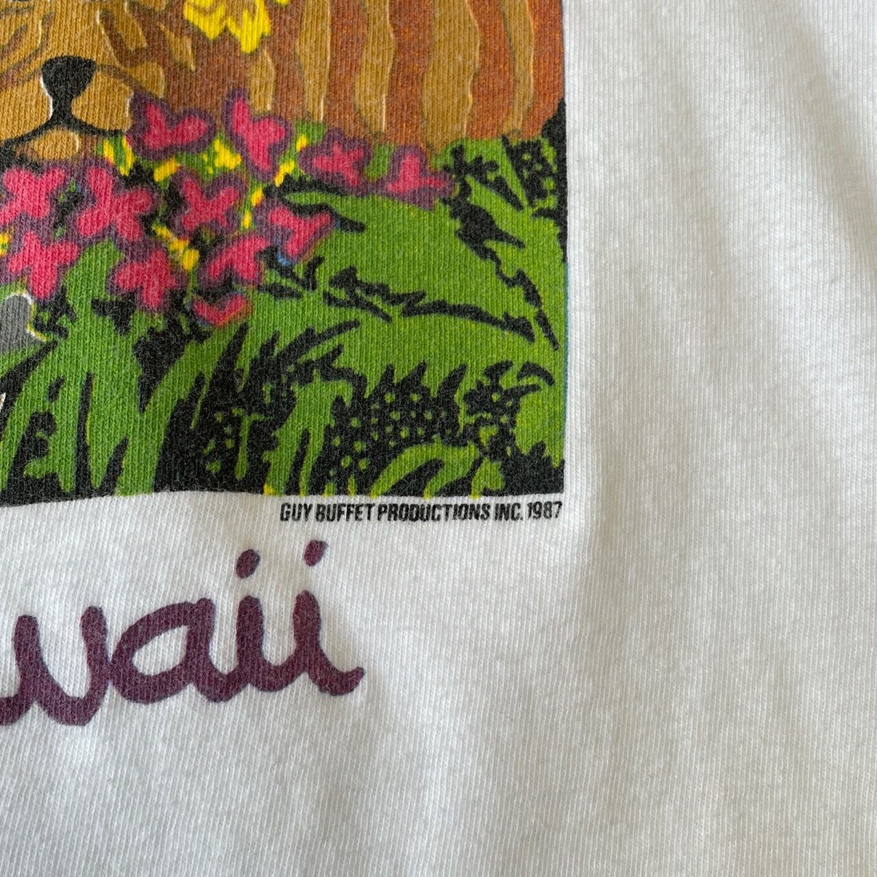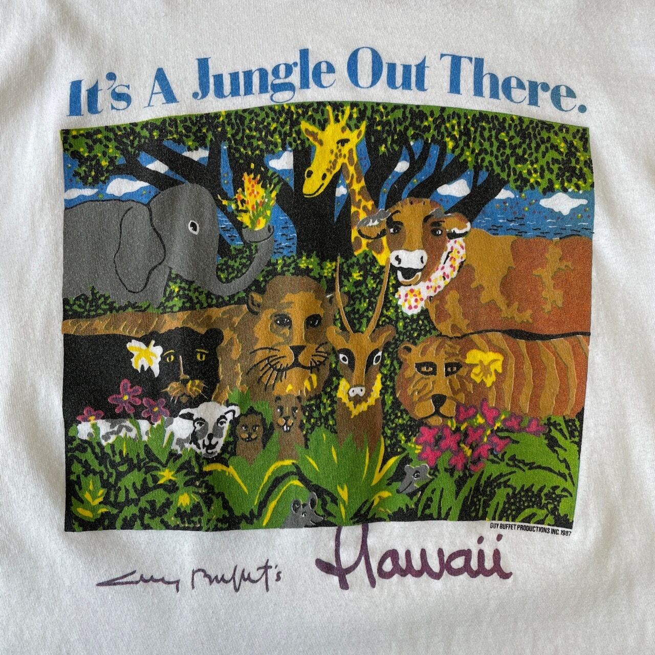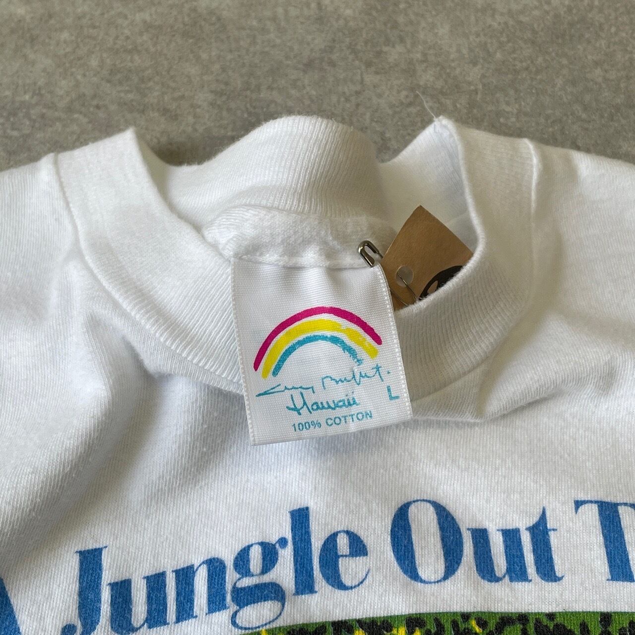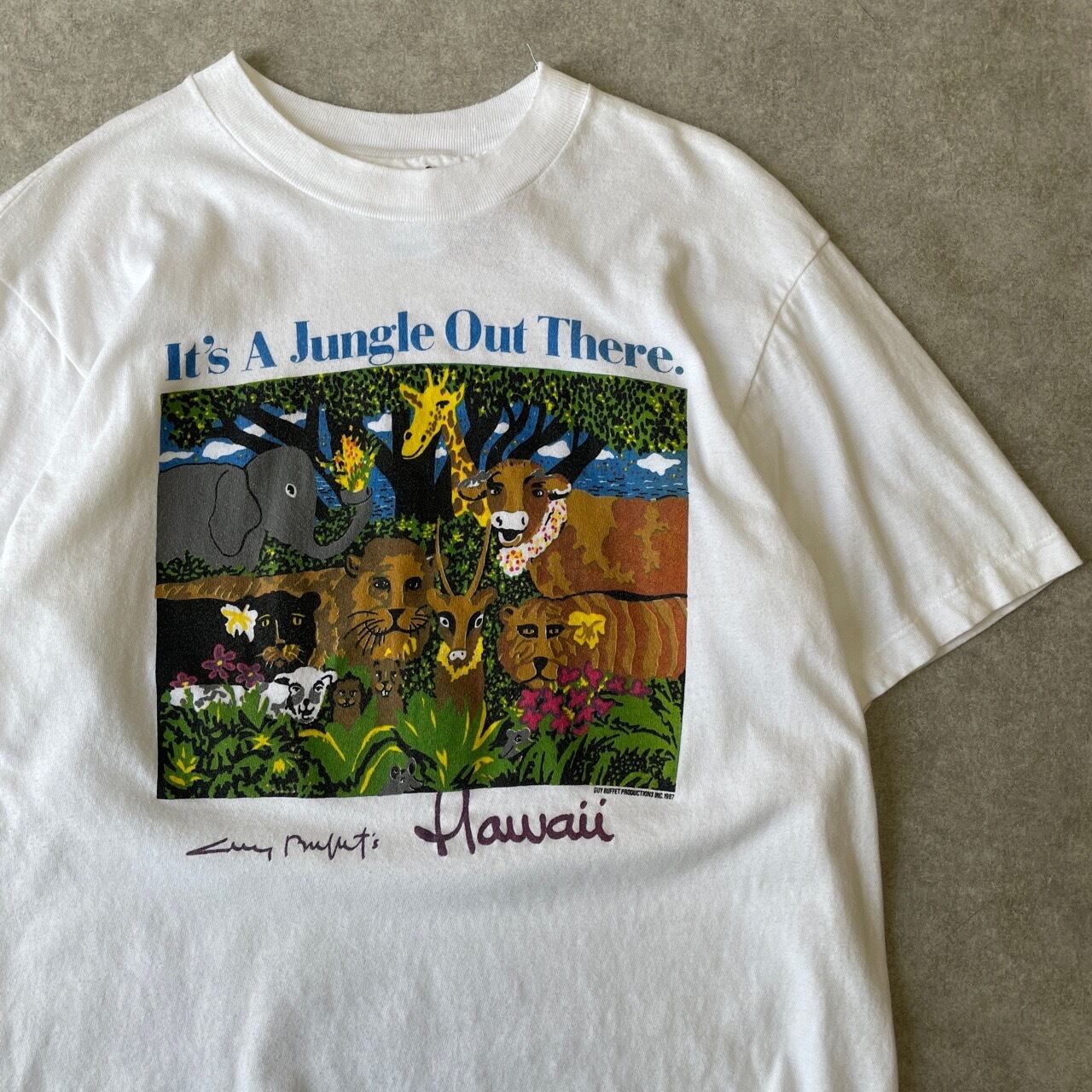 80s 90s Hawaii アニマルTシャツ ヴィンテージ シングルステッチ アート 動物 キリン ゾウ ライオン 牛 トラ ジャングル ハワイ 80年代 90年代 古着 ビンテージ L 26042712