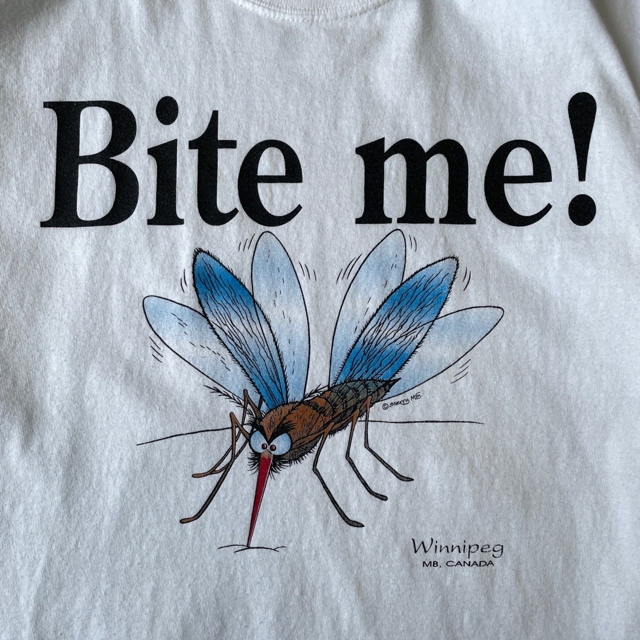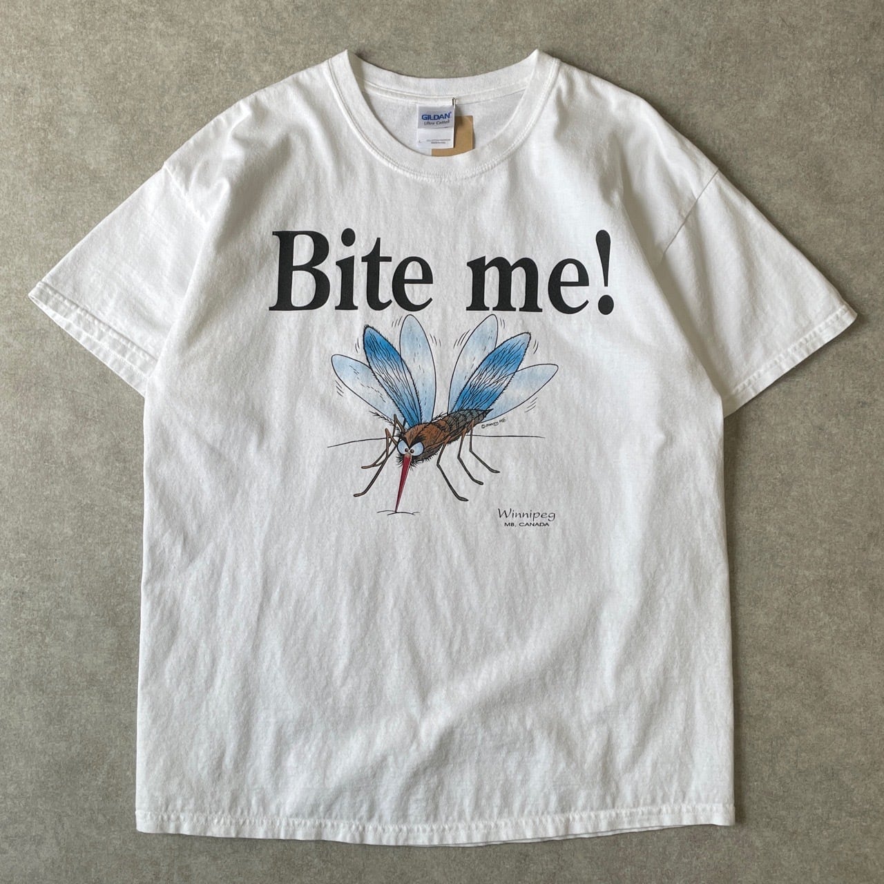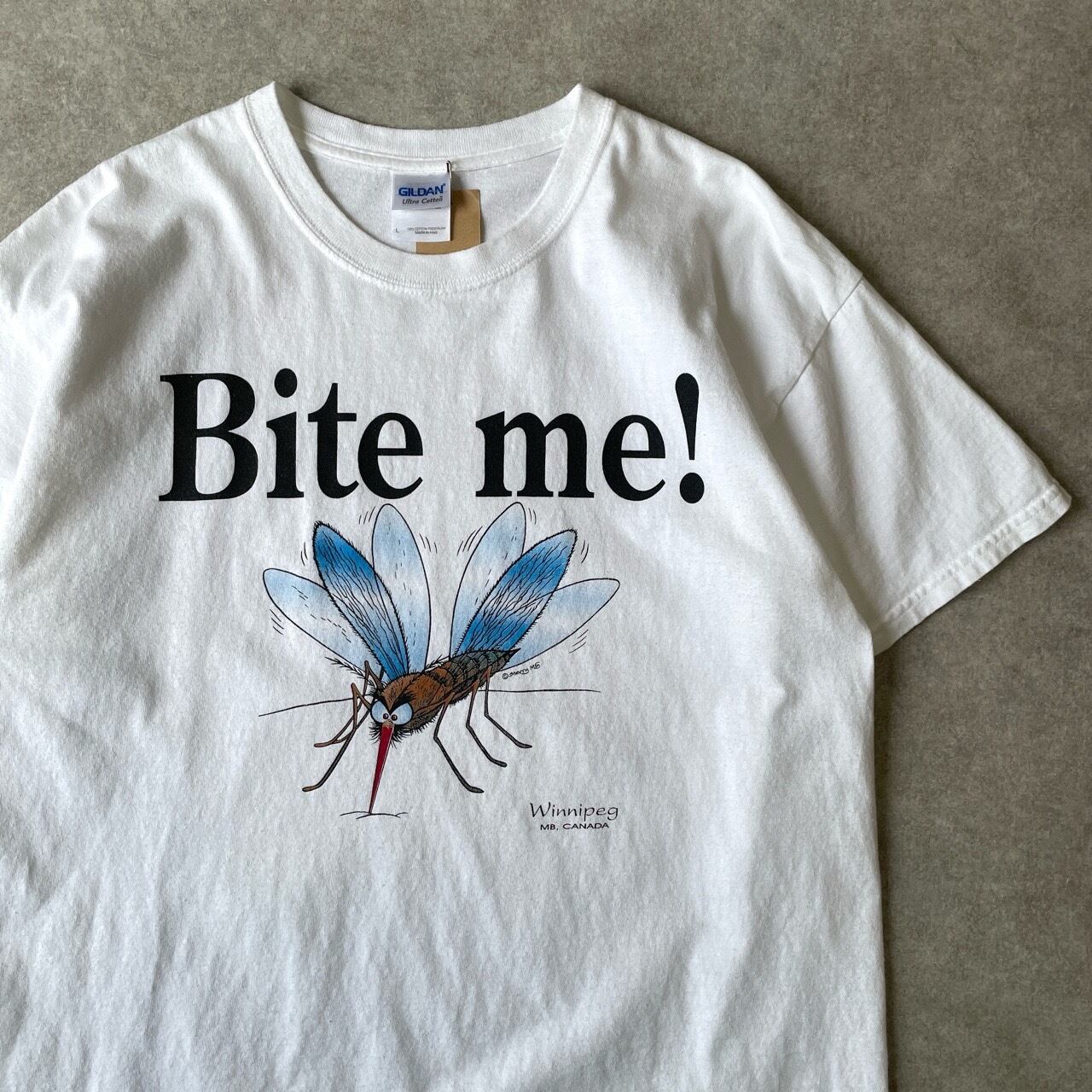 00s Bite me! 蚊 Tシャツ 虫 アート ヴィンテージ 古着 グラフィック プリント 白 ホワイト 00年代 2000s 2000年代 ビンテージ L 26042715