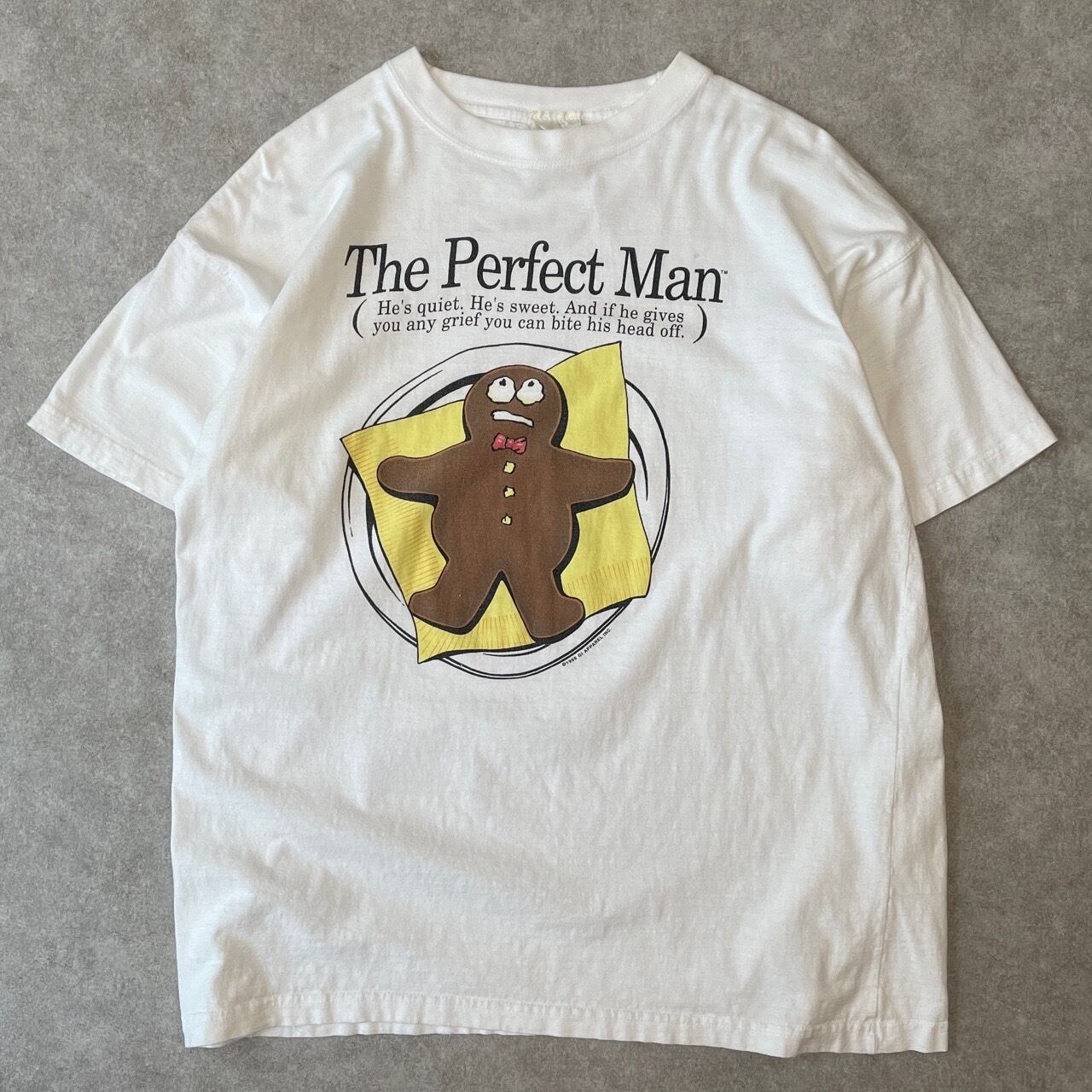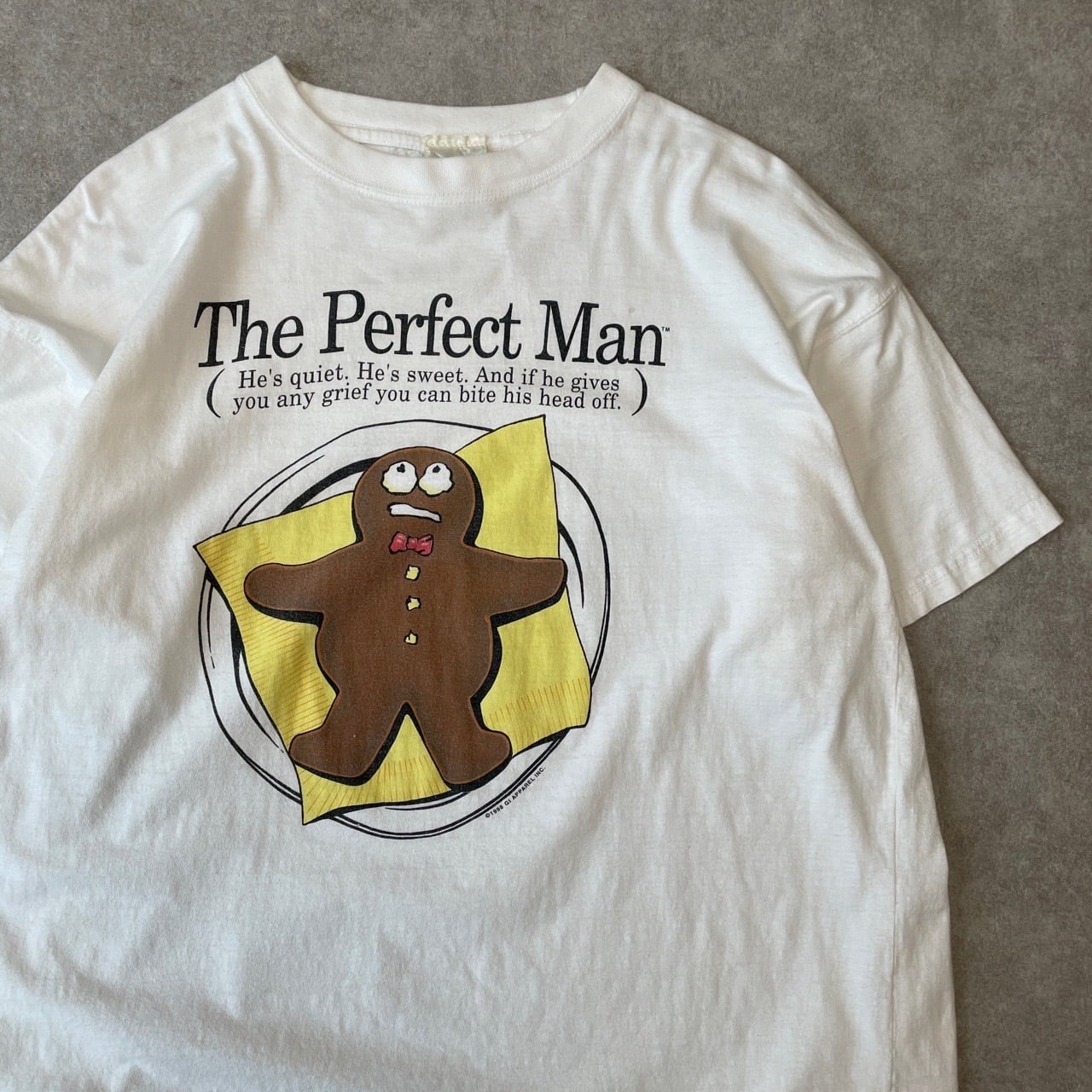 90s The Perfect Man ジンジャーブレッドマン Tシャツ ヴィンテージ 古着 ジョーク メッセージ お菓子 白 ホワイト 90年代 ビンテージ XL 26042719
