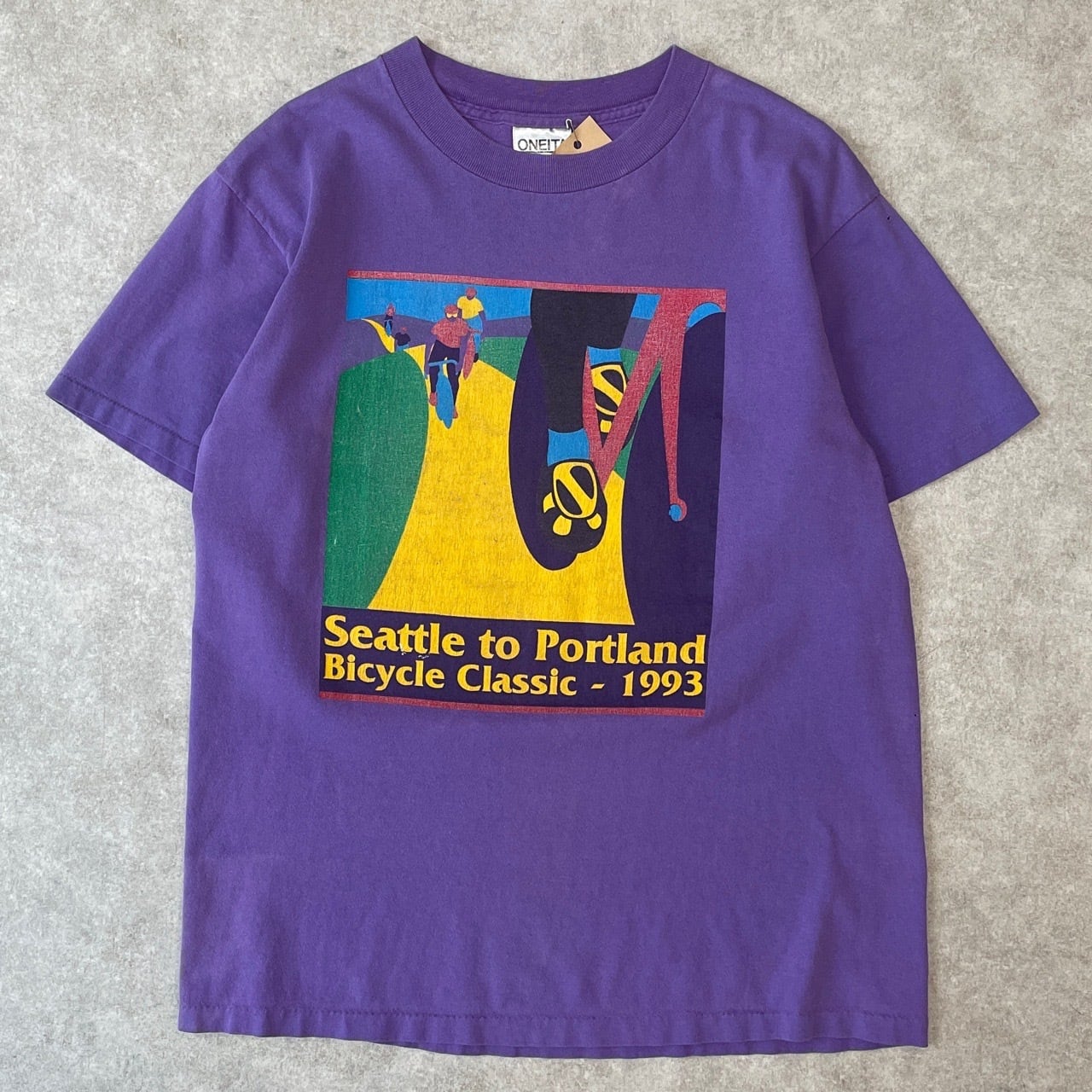 90s USA製 自転車 1993 アートTシャツ ヴィンテージ シングルステッチ 紫 パープル 古着 90年代 ビンテージ M 26042721