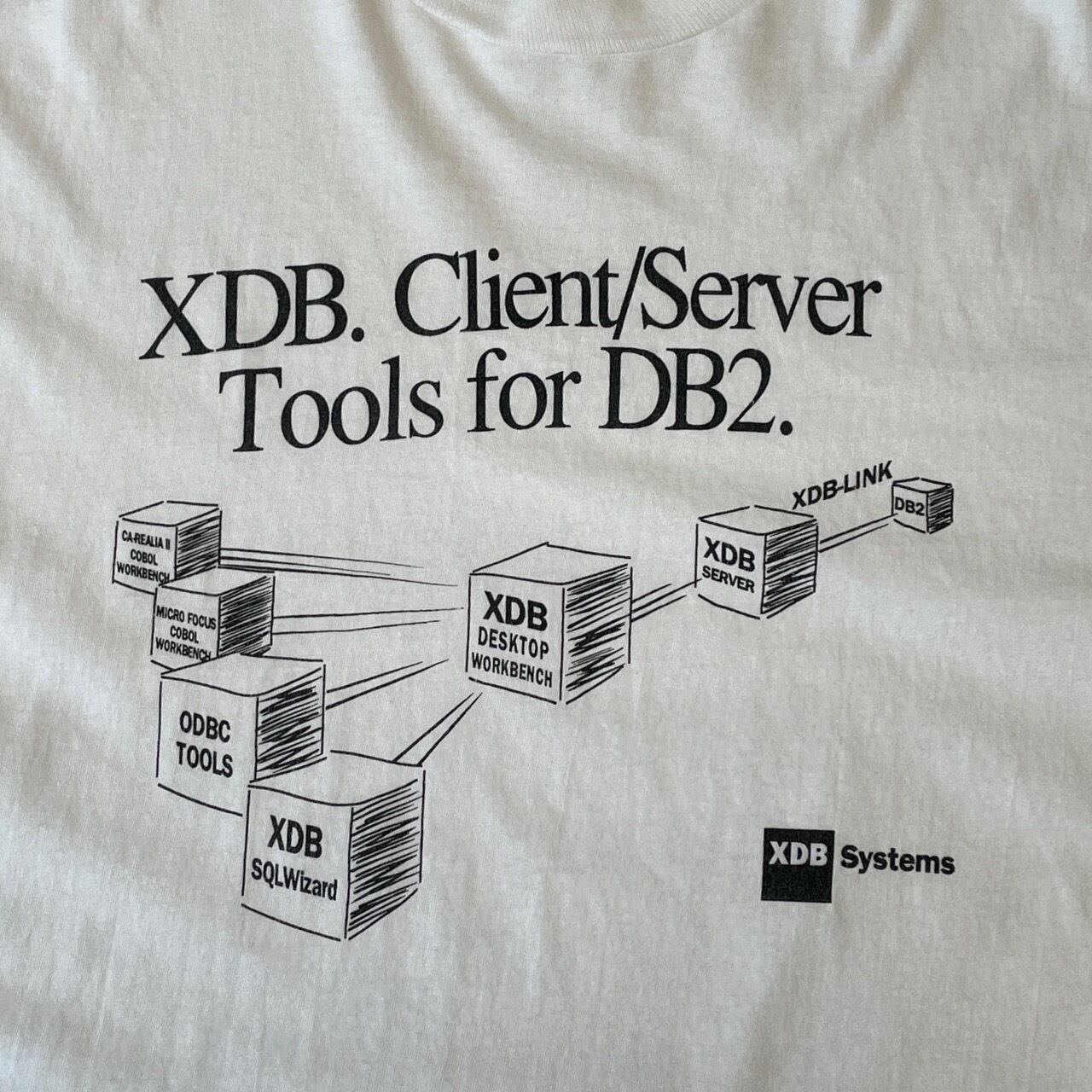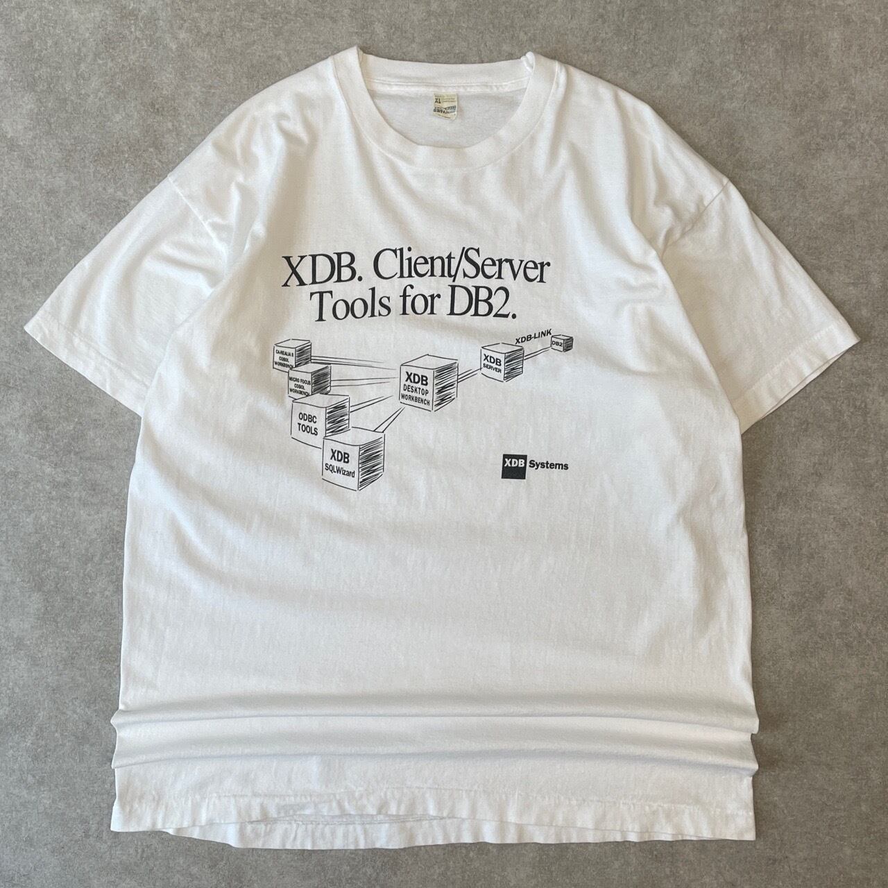 90s XDB Systems IBM DB2 データベース Tシャツ ヴィンテージ シングルステッチ コンピュータ PC パソコン サーバー IT企業 テック系 白 ホワイト 古着 90年代 ビンテージ XL 26042801