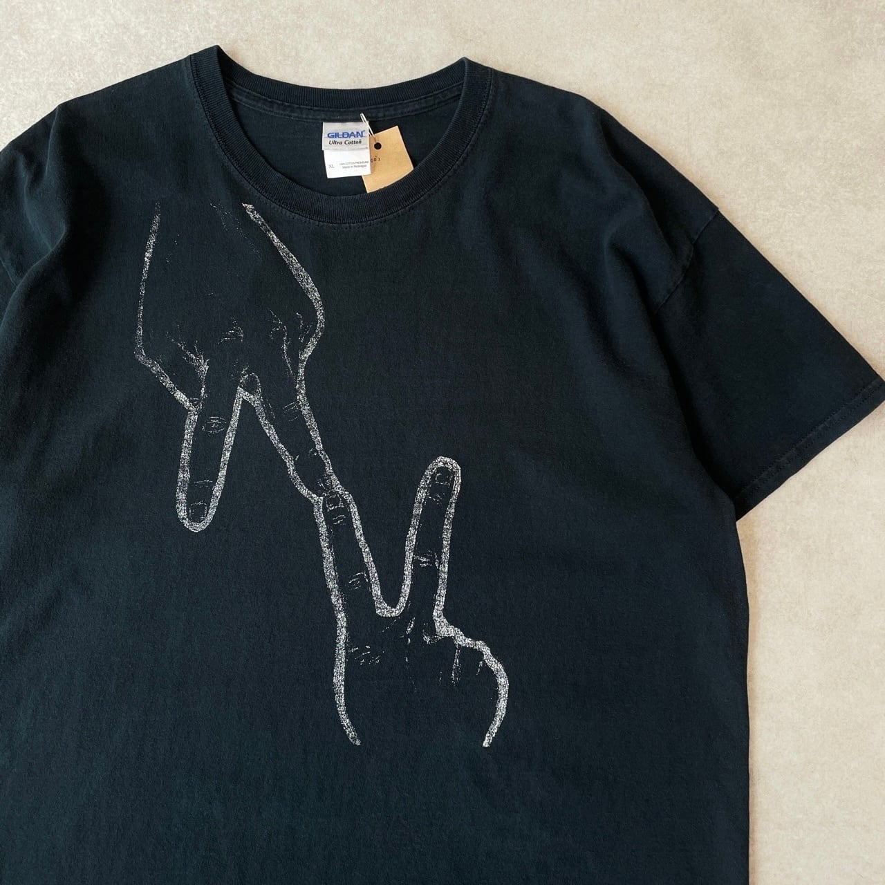 00s ピースサイン ハンドサイン Tシャツ ヴィンテージ アート 黒 ブラック 古着 メッセージ 00年代 2000s 2000年代 ビンテージ XL 26042908