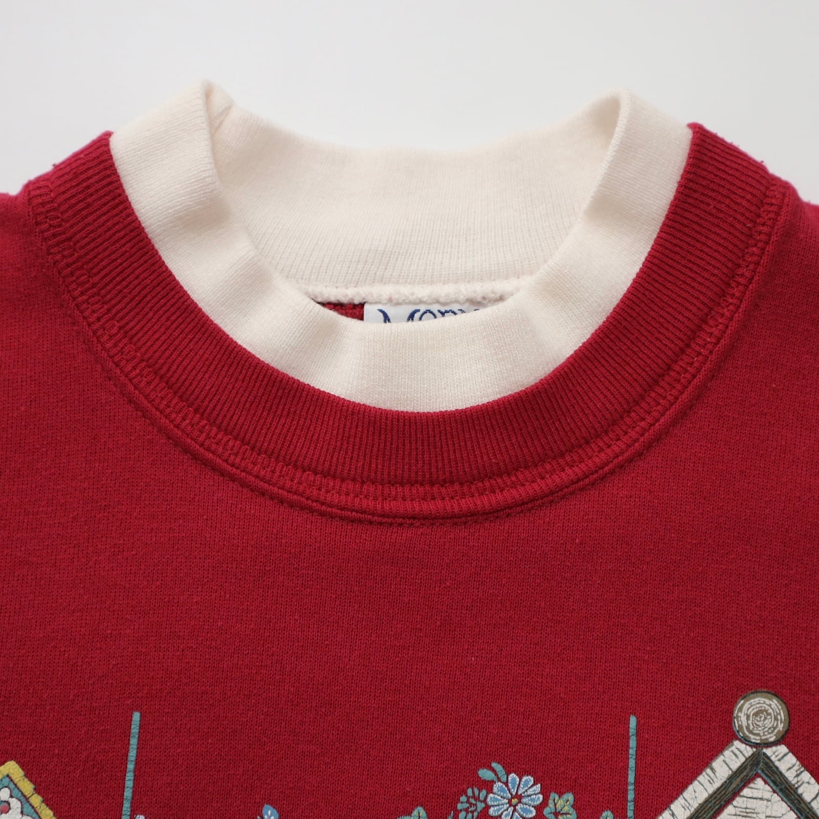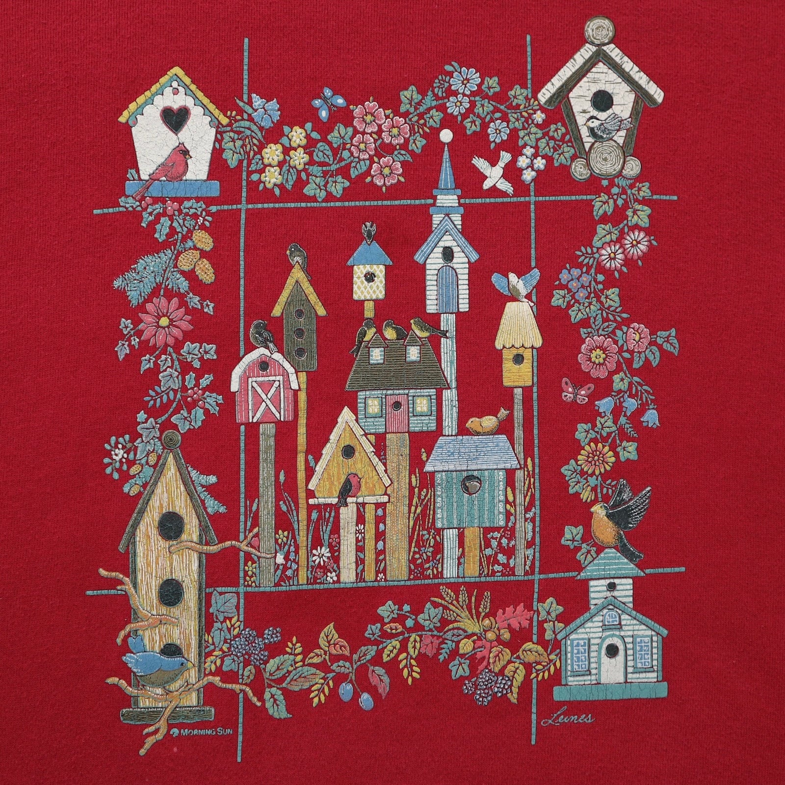 90s MORNING SUN 鳥 スウェット 動物 アニマルスウェット ピンク 赤 古着 アニマル USA製 レディースXL相当 表記L トレーナー ヴィンテージ ビンテージ 90年代 旧タグ 22111802