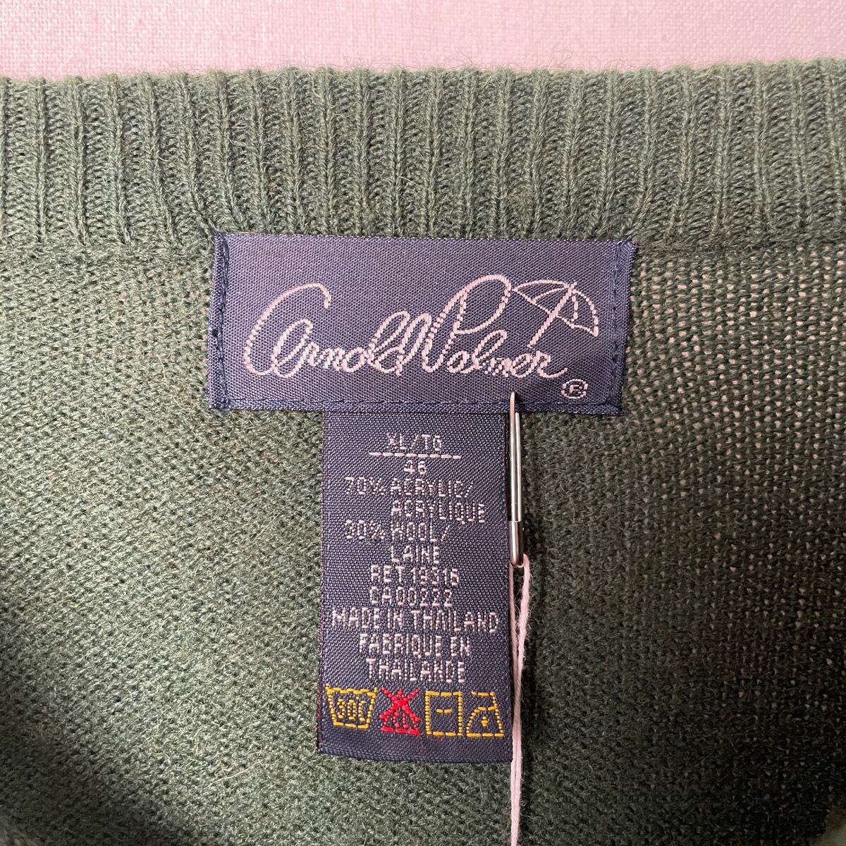 90s Arnold Palmer アクリル ウール クルーネック ニット セーター ダークグリーン 深緑 チェック 古着 アーノルドパーマー ヴィンテージ ビンテージ 90年代 旧タグ メンズXL オーバーサイズ 大きいサイズ ビッグシルエット ビッグサイズ ゆるだぼ 太アーム アクリルニット アクリルセーター 23012003