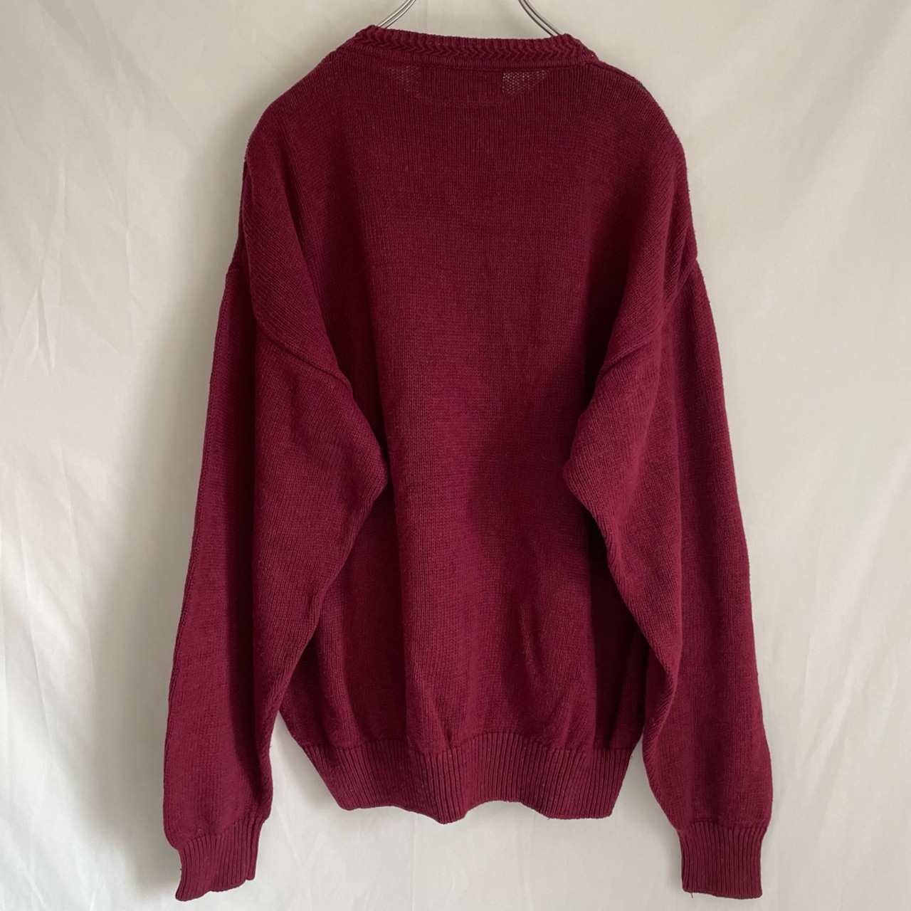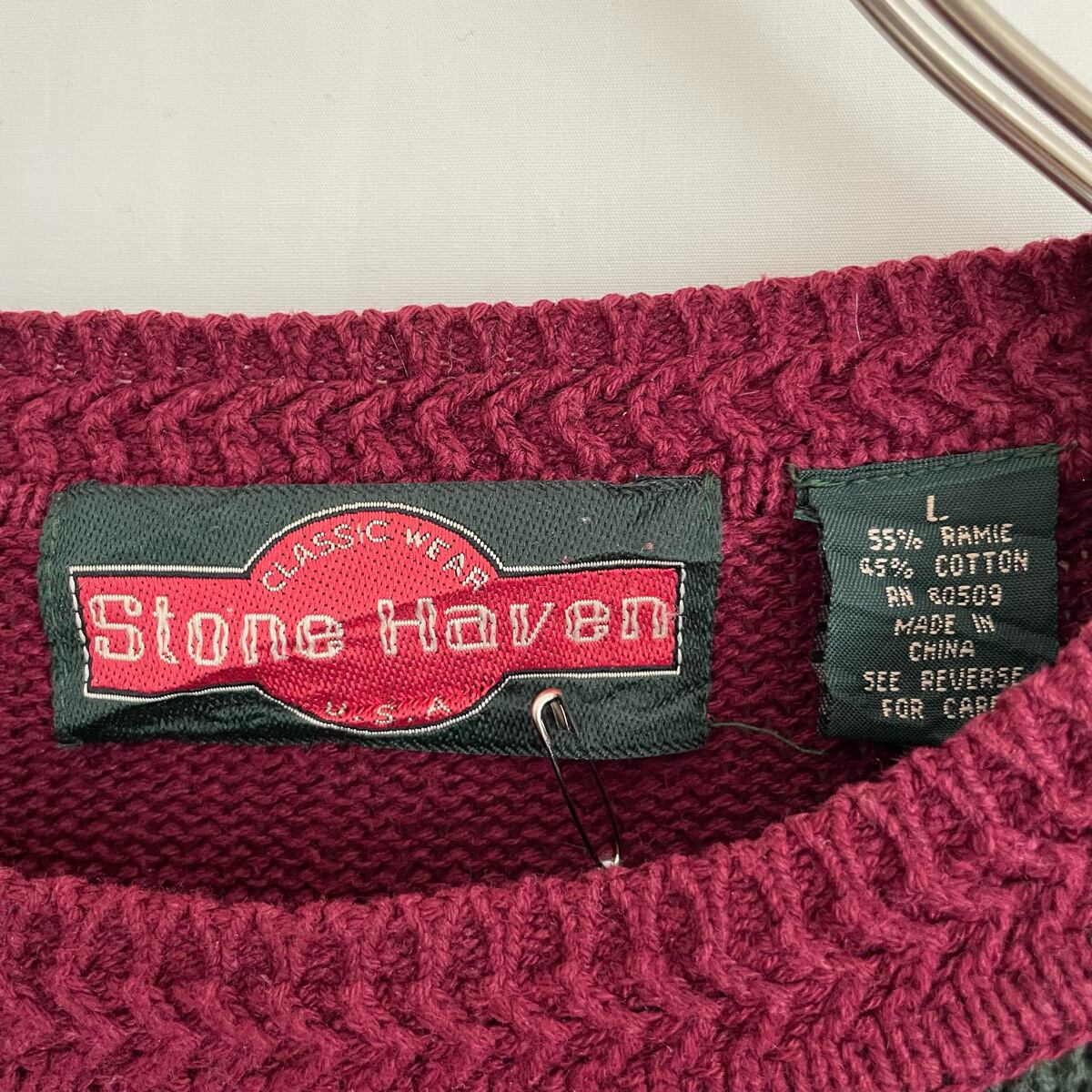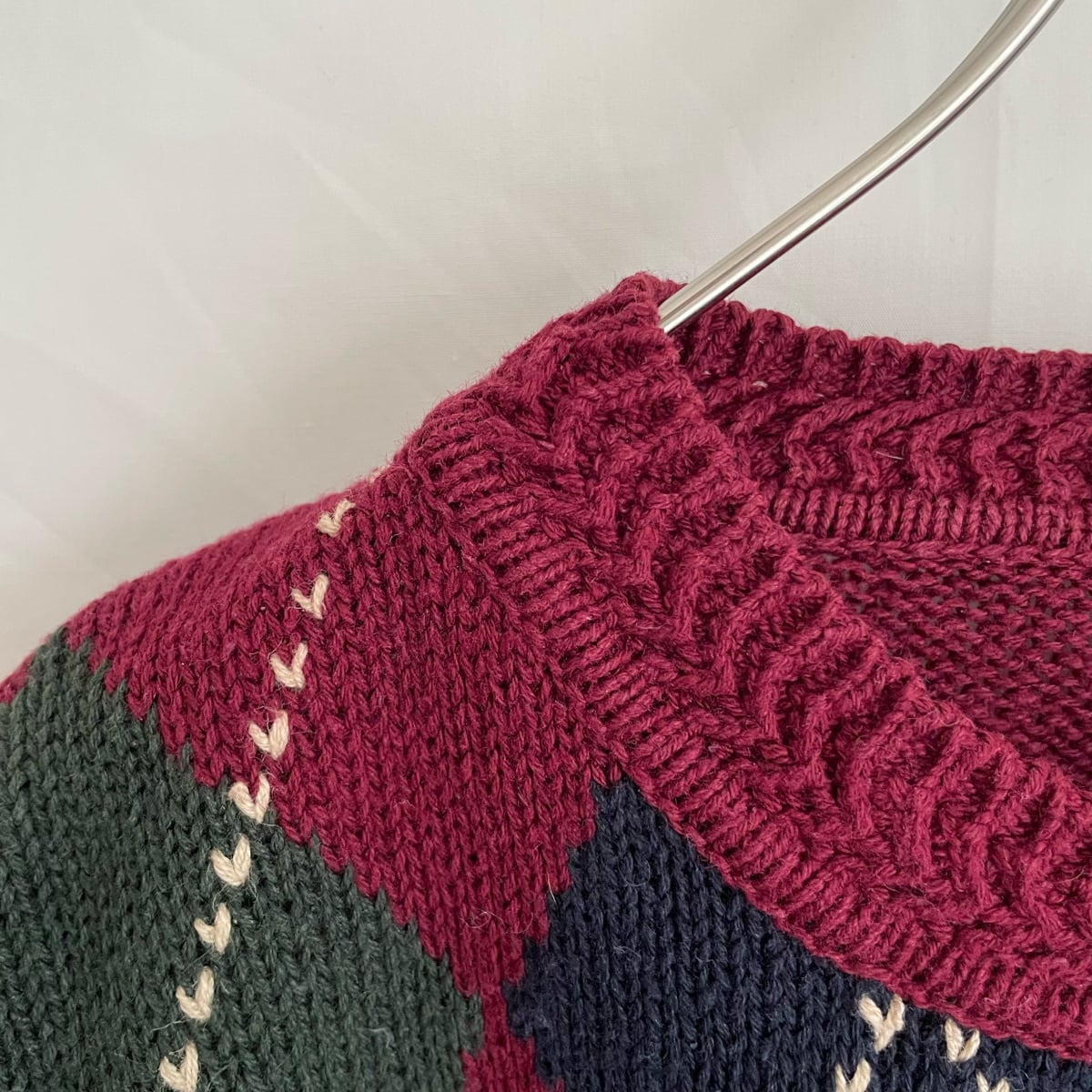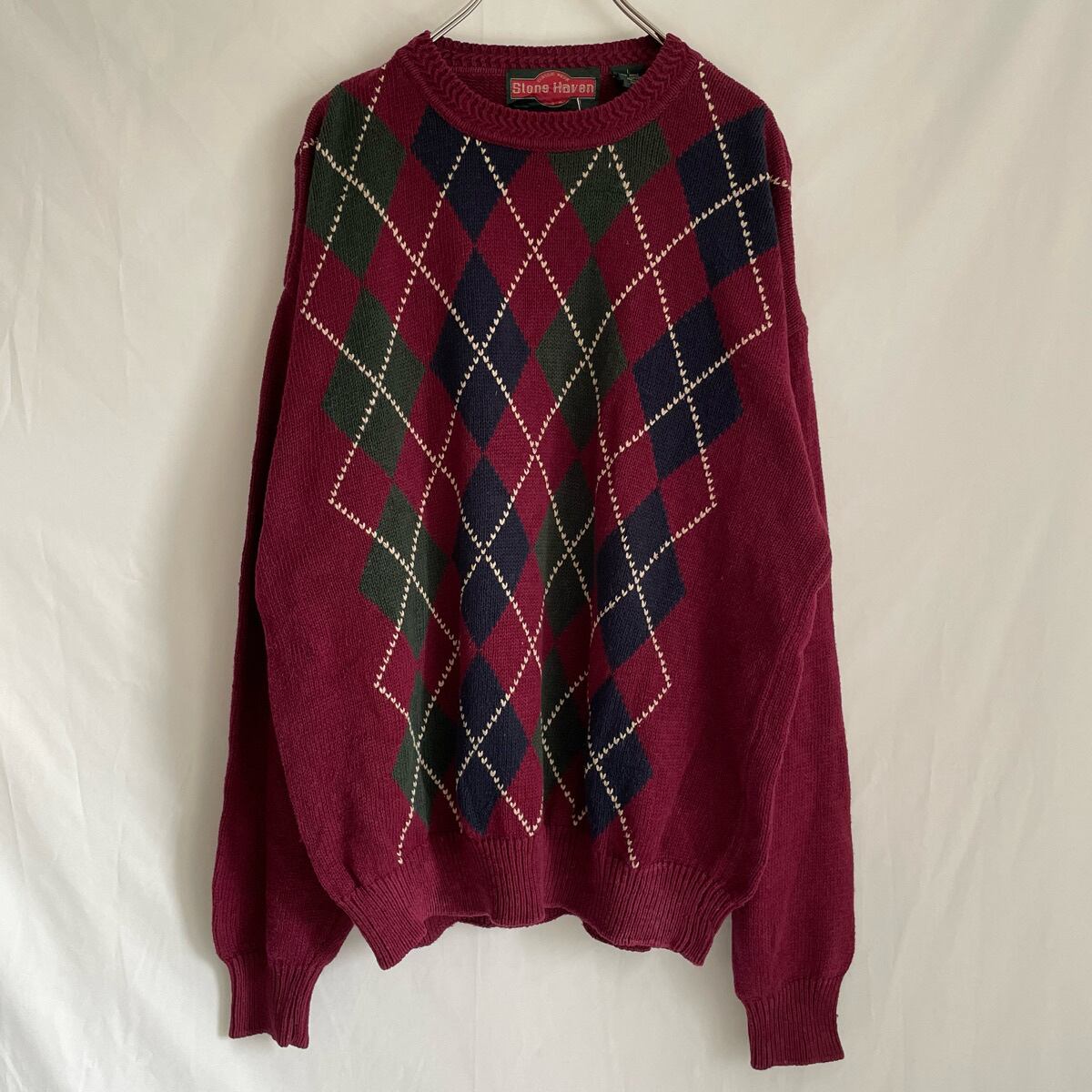 90s Stone Haven アーガイル コットンニット セーター 古着 クルーネック バーガンディ ニット コットンセーター コットン アーガイル柄 ラミー ヴィンテージ ビンテージ 90年代 マルーン ボルドー ワインレッド メンズL 23013110
