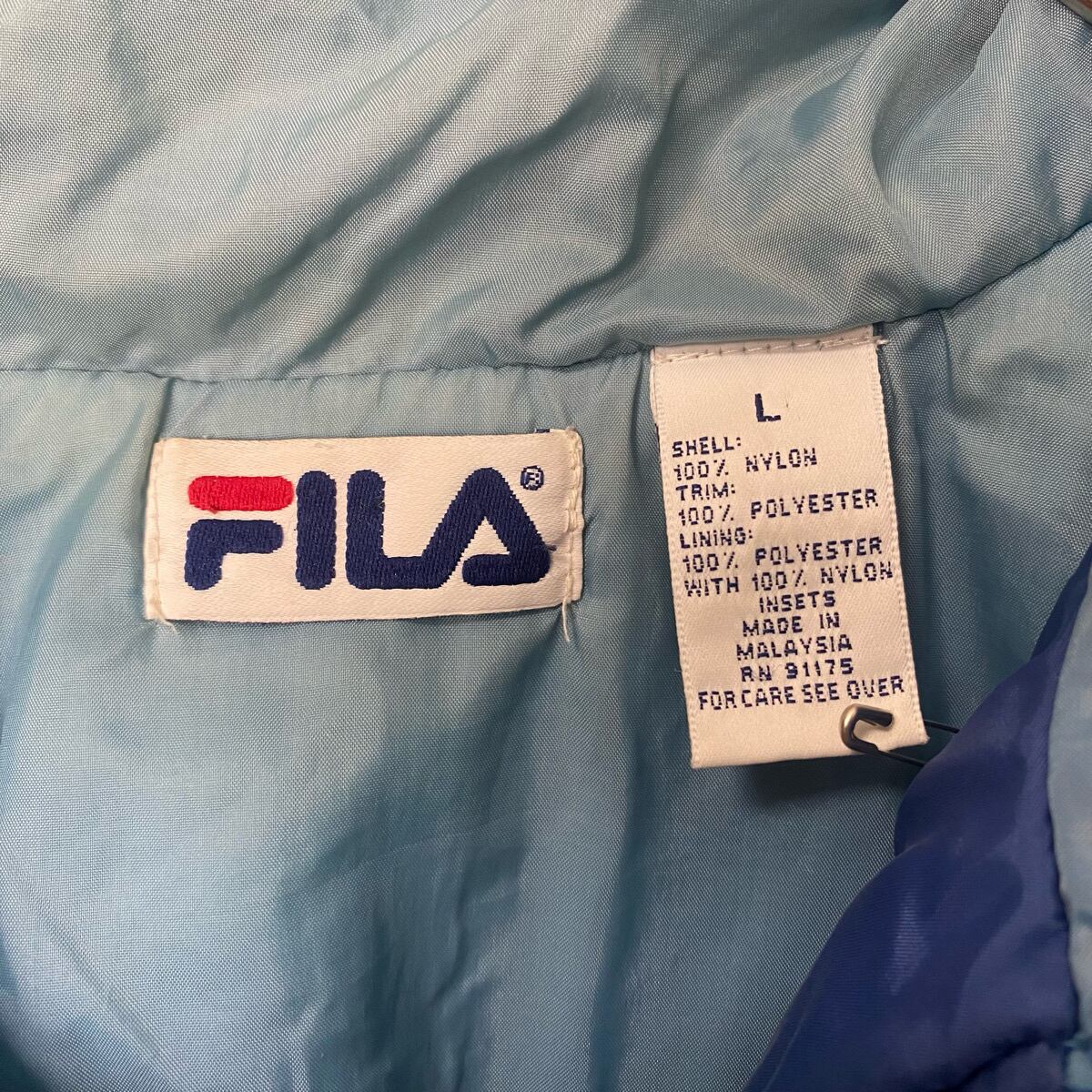 90s FILA ナイロンジャケット 古着 フィラ ウーブンジャケット ウインドブレーカー 青 ブルー シルバー ヴィンテージ ビンテージ 90年代 ブルゾン メンズ L 23091015