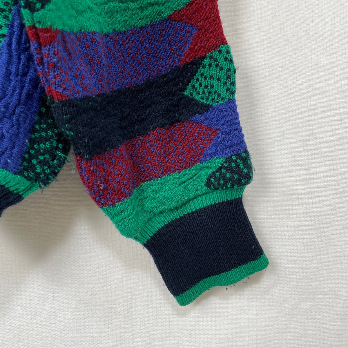 90s Carlo Colucci 3Dニット セーター ショールカラー ハーフジップ 古着 ドイツ製 ヴィンテージ ビンテージ 90年代 ウール アクリル ユーロ古着 メンズ オーバーサイズ 大きいサイズ ビッグシルエット ビッグサイズ ゆるだぼ 23112501