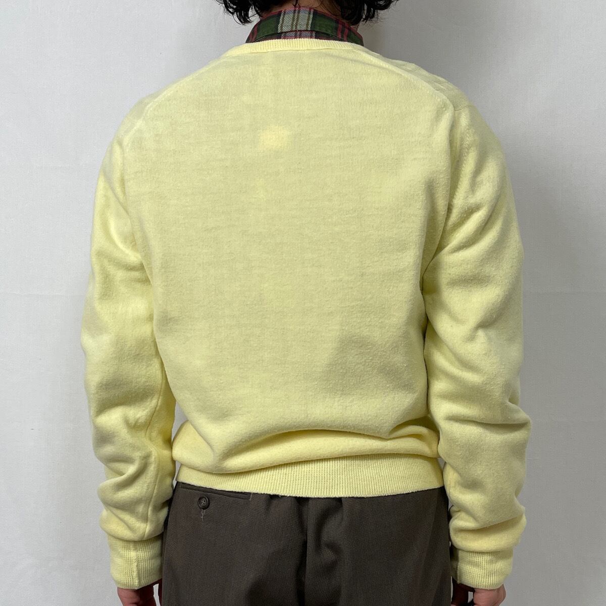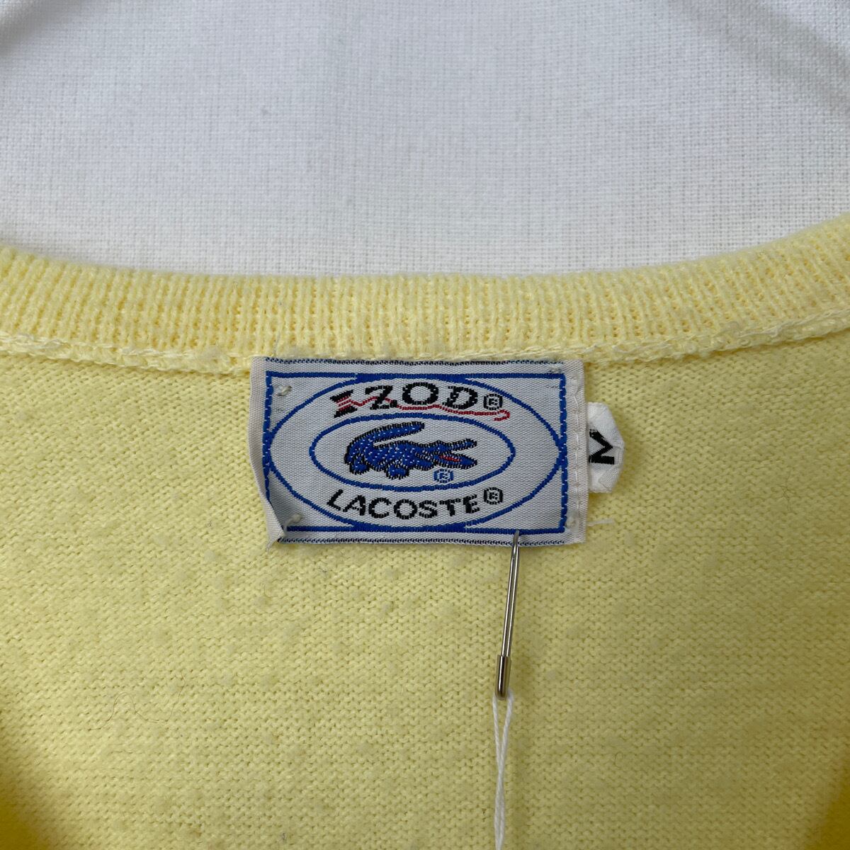 70s 80s IZOD LACOSTE Vネック セーター ニット 古着 ラコステ 黄 イエロー ヴィンテージ ケーブル編み 70年代 80年代 レモンイエロー アイゾッド ビンテージ メンズ M アクリル 23122202