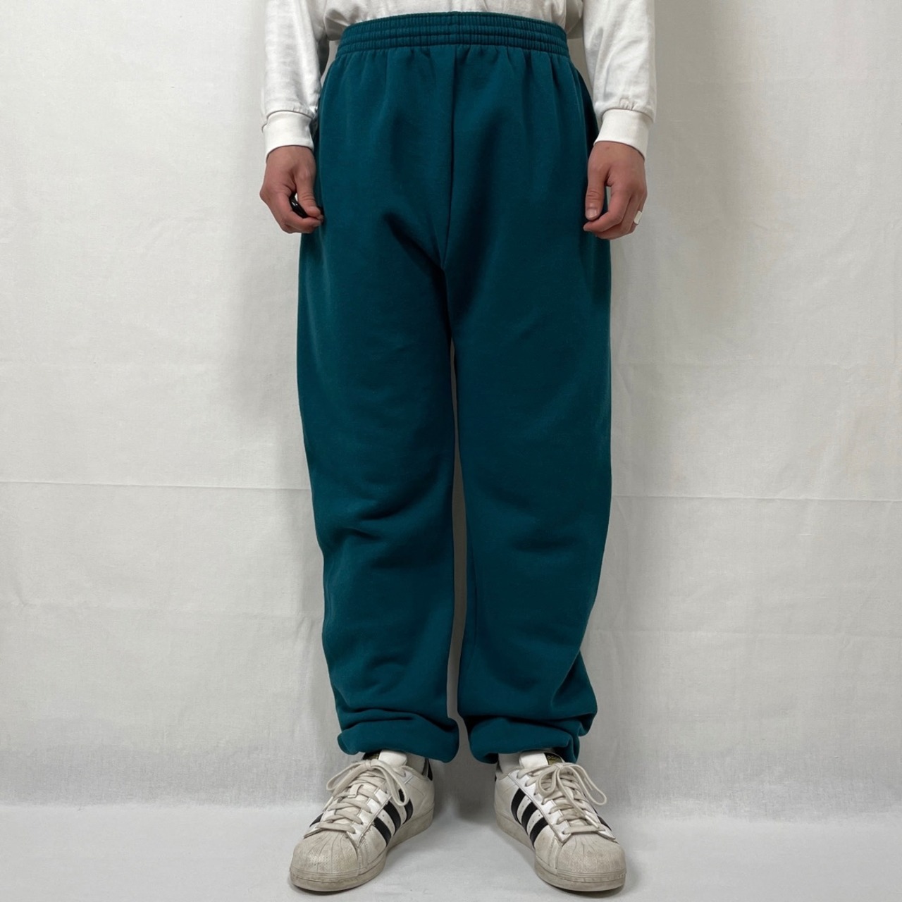 90s USA製 デッドストック Hanes スウェットパンツ 青緑 古着 ヴィンテージ ヘインズ 裏起毛 90年代 DEADSTOCK dead stock メンズ L 24010606
