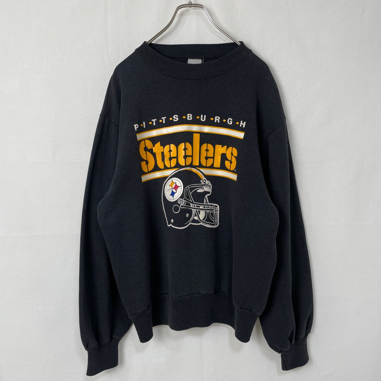 90s NFL Steelers スウェット 古着 スティーラーズ 黒 ブラック ヴィンテージ 90年代 アメフト チームロゴ ビッグロゴ 太アーム ビンテージ トレーナー メンズ 24012303
