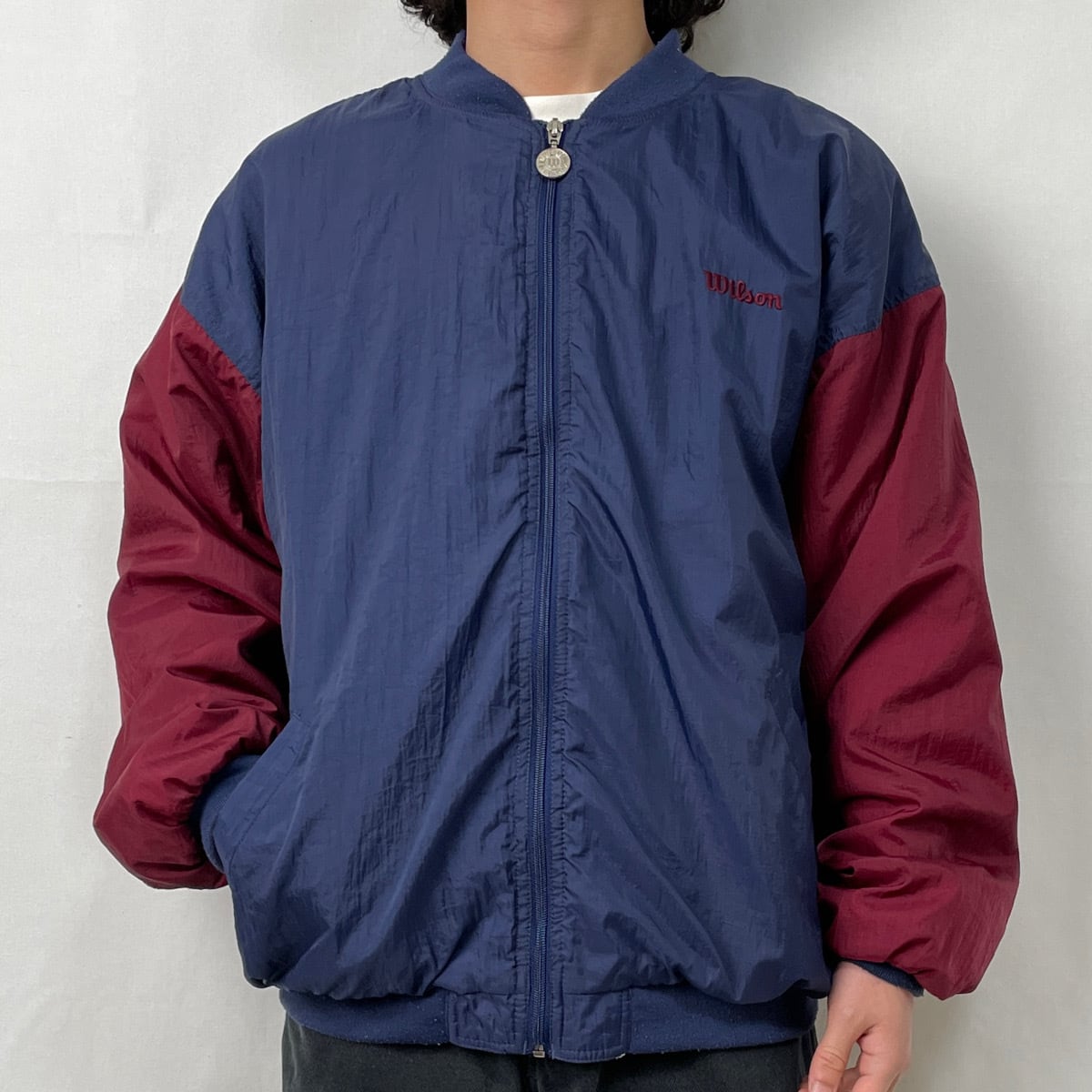 90s Wilson ナイロンジャケット ボンバージャケット ブルゾン 古着 ウィルソン ヴィンテージ 90年代 ビンテージ ネイビー 紺 短丈 太アーム メンズ L 24020702