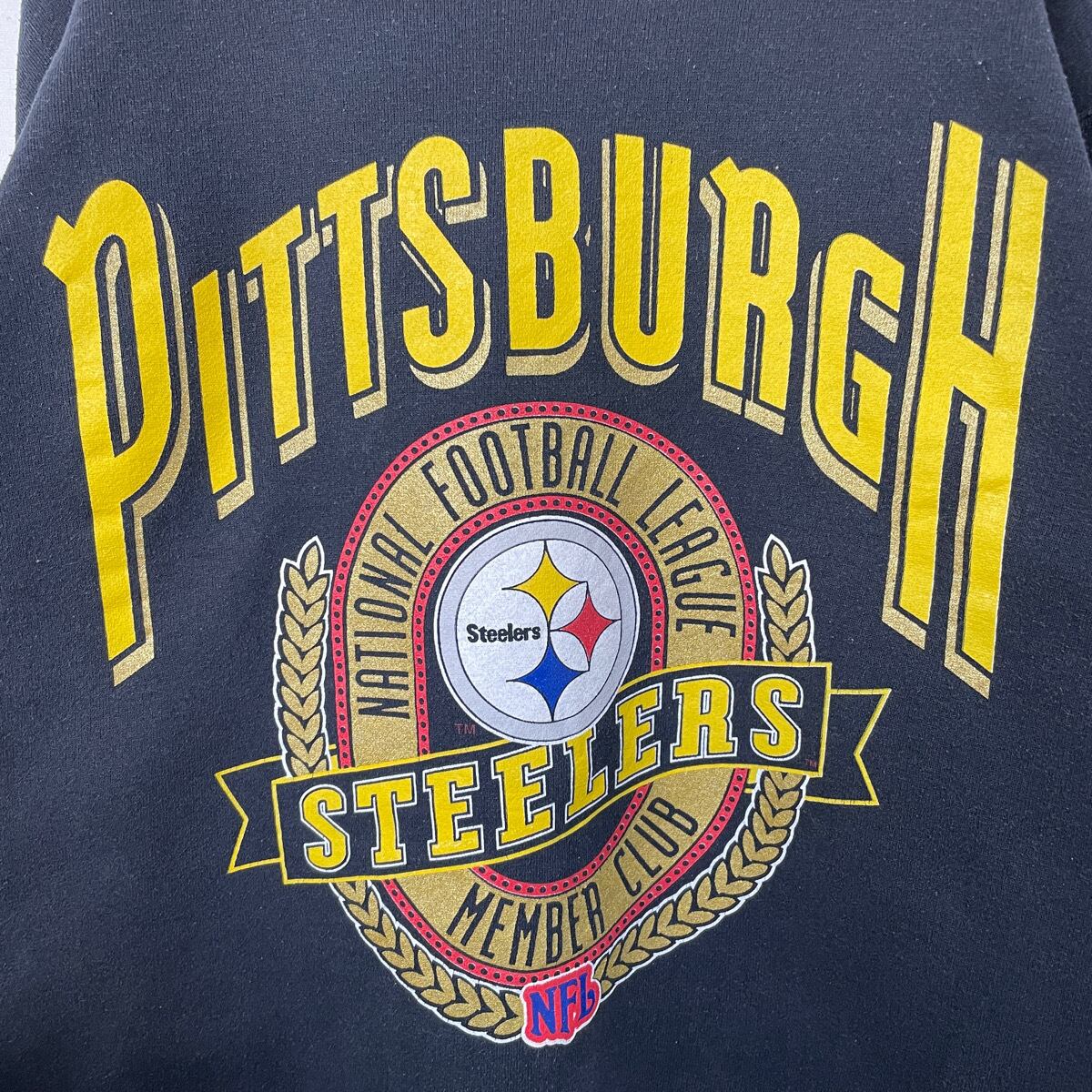 90s USA製 NUTMEG NFL スティーラーズ スウェット 古着 アメフト 黒 ブラック ヴィンテージ チームロゴ チーム 90年代 Steelers ビンテージ ビッグロゴ トレーナー メンズ M ナツメグ 24031202