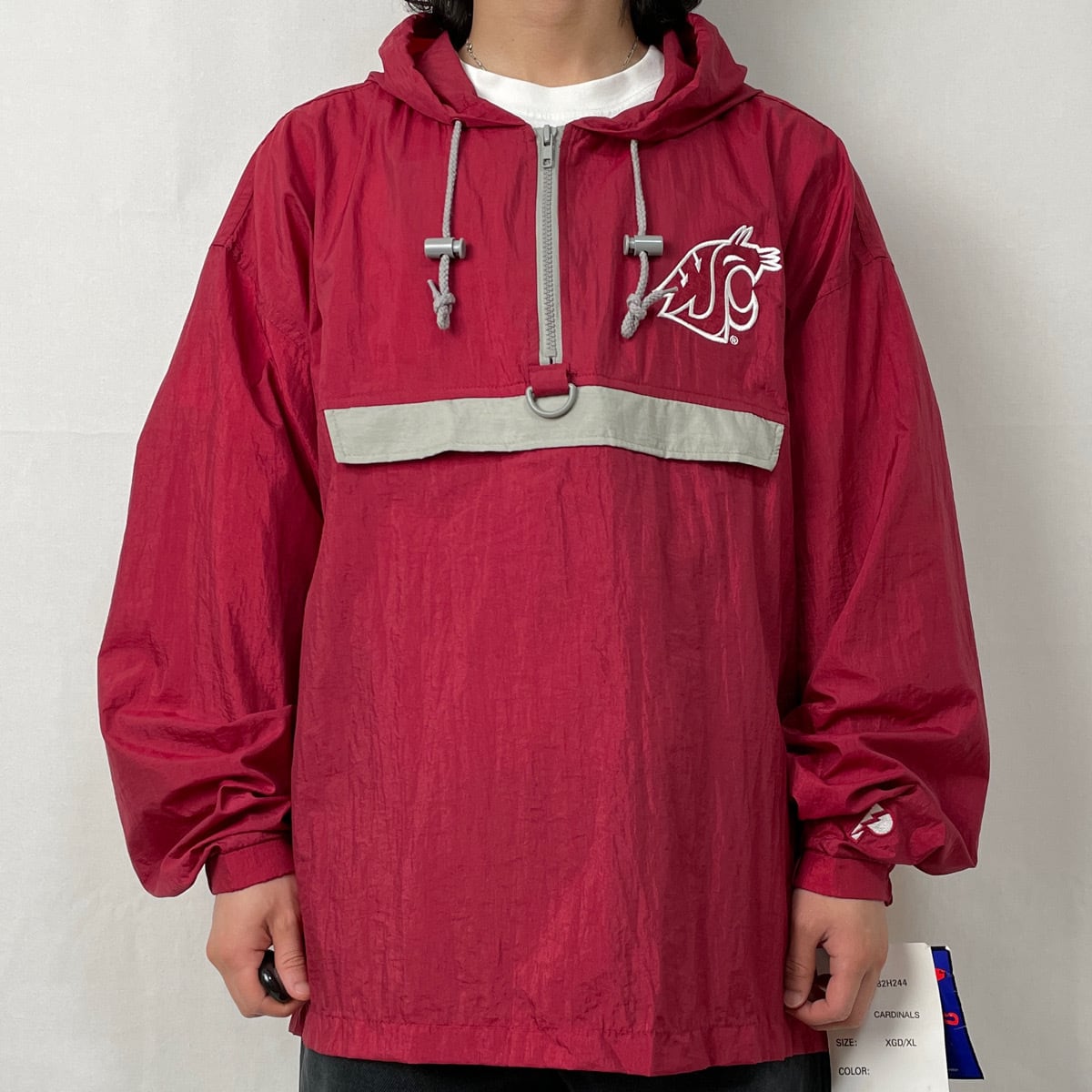 90s PRO PLAYER カレッジロゴ アノラック ハーフジップ ナイロンジャケット 古着 プルオーバー WSU パーカー カレッジ ワシントン州立大学 パッカブル アノラックパーカー ヴィンテージ 90年代 ビンテージ メンズ XL 24040701