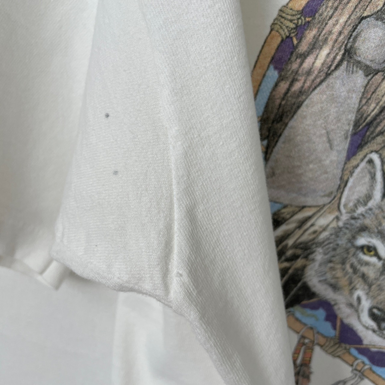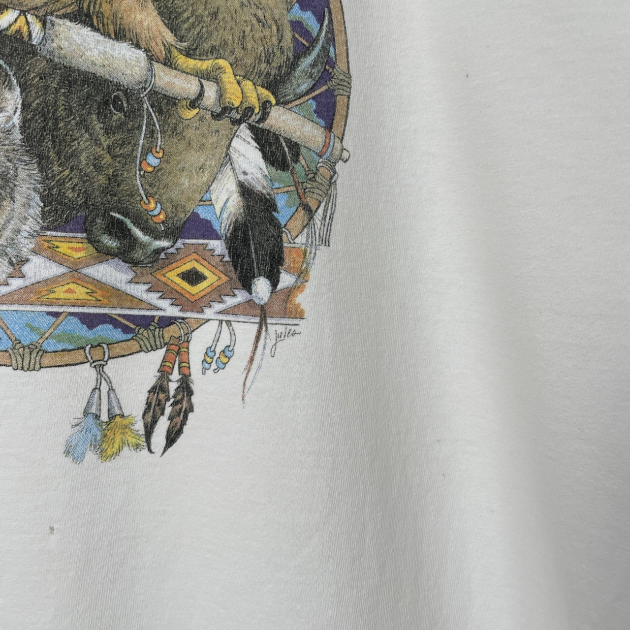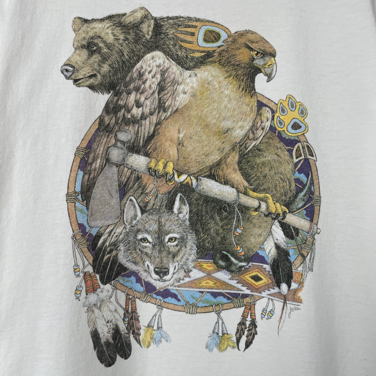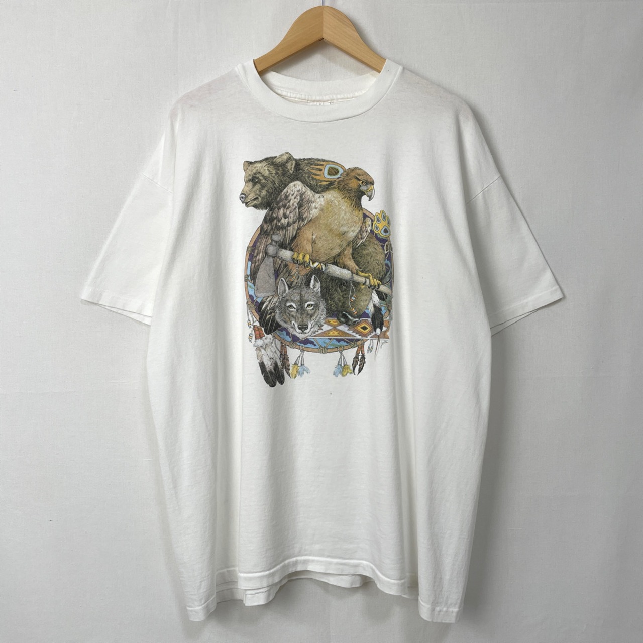90s USA製 アニマルTシャツ インディアン 古着 ヴィンテージ 白 シングルステッチ コットン ホワイト 90年代 ビンテージ グラフィック プリント メンズ 2XL 24063001