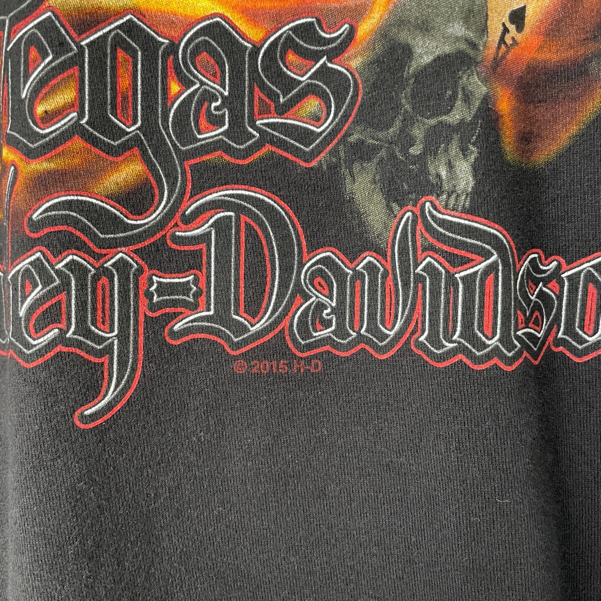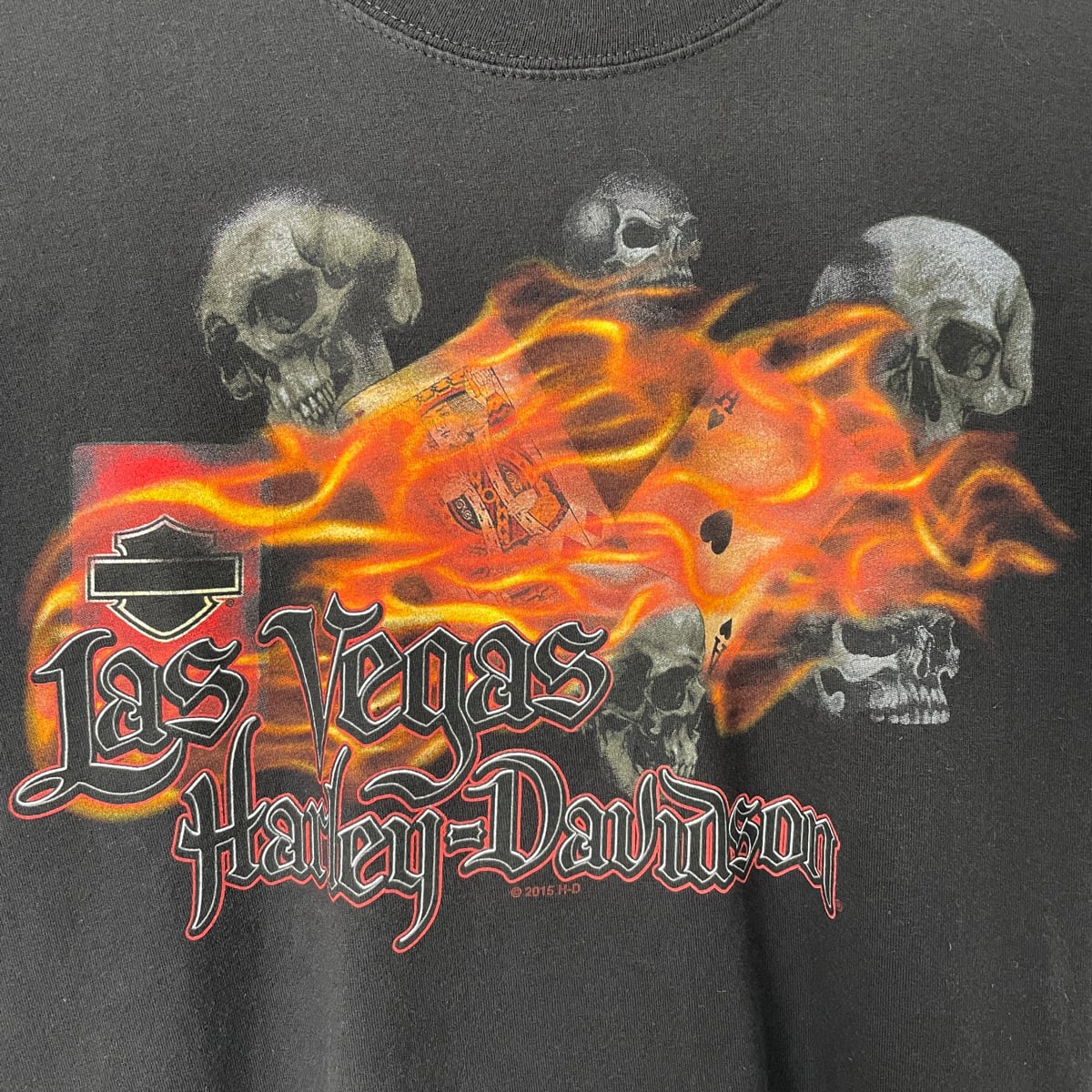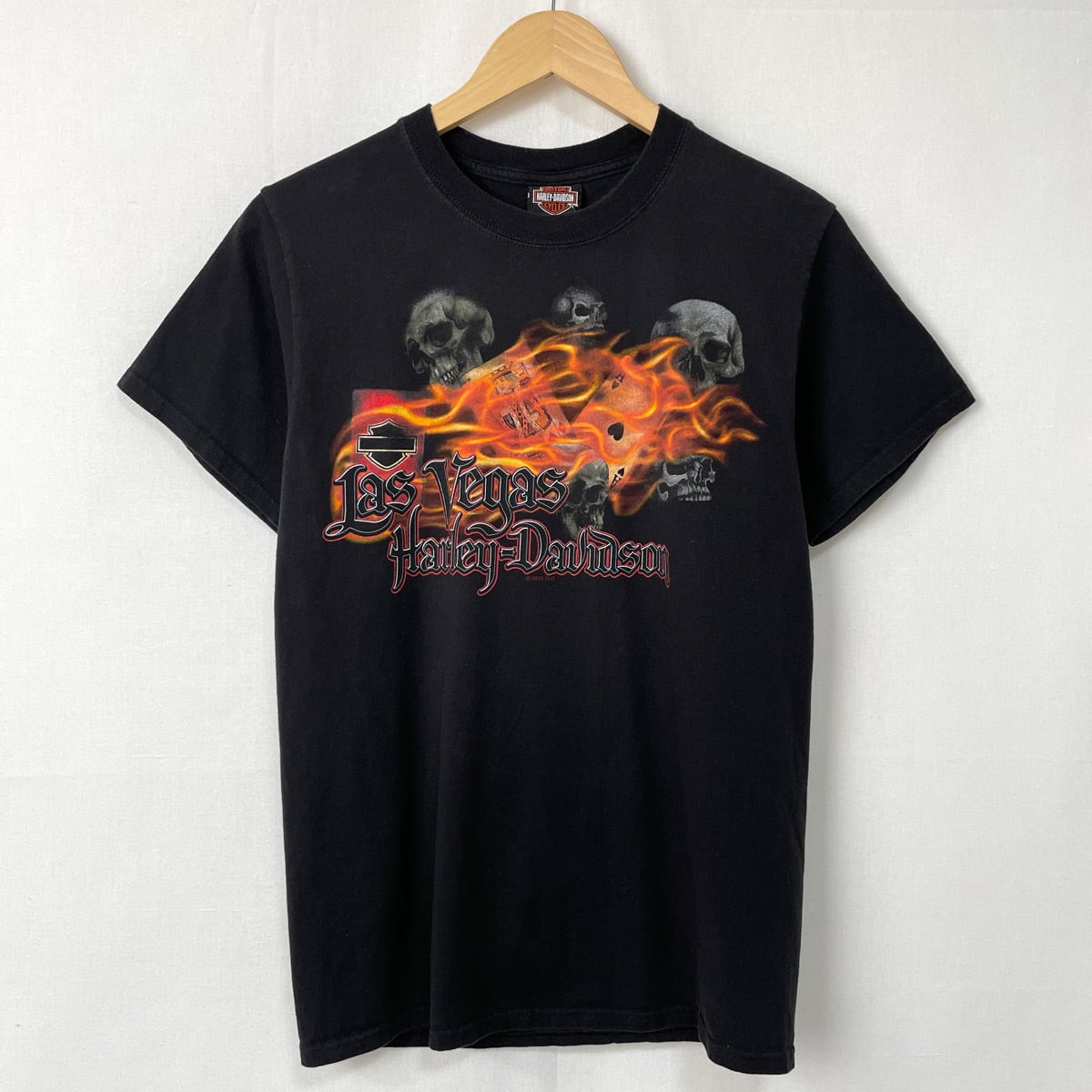古着 ハーレーダビッドソン Tシャツ スカル トランプ 黒 ブラック ハーレー HARLEY-DAVIDSON メンズ S レディース フレイム ラスベガス 24072303