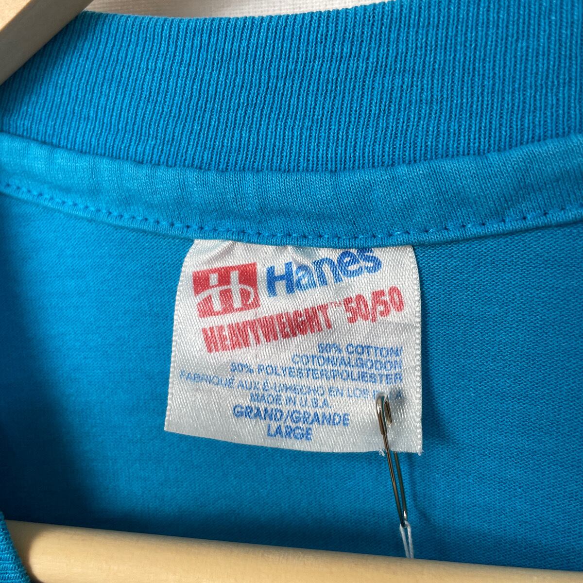 90s USA製 HARLEQUIN ヒョウ アニマルTシャツ 古着 ヴィンテージ 豹 アニマル 動物 水色 ライトブルー シングルステッチ コットン プリント グラフィック 90年代 ビンテージ メンズ L 24081303