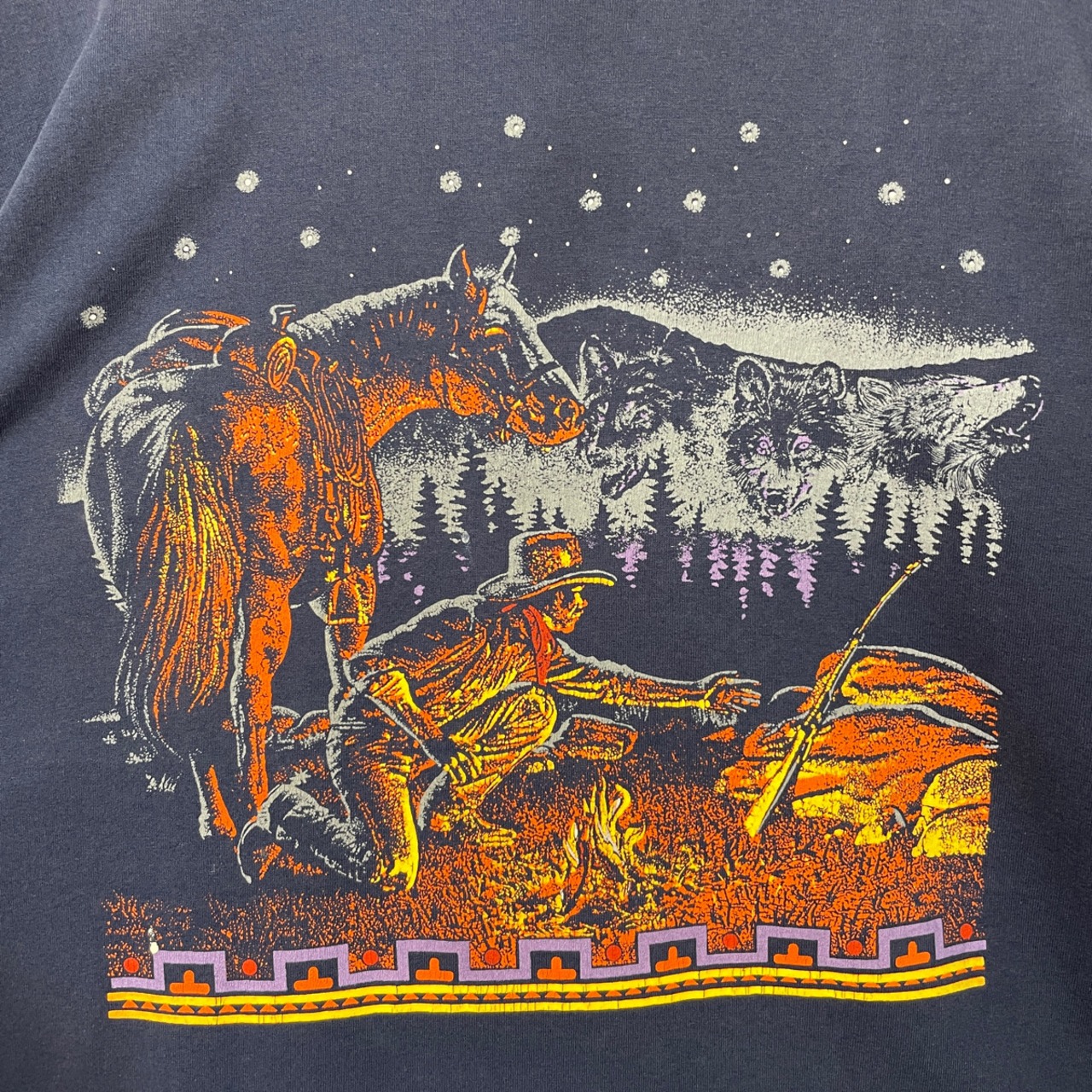 90s USA製 ウエスタン 馬 Tシャツ 古着 ヴィンテージ 紺 ネイビー アニマルTシャツ グラフィック プリント 90年代 ビンテージ キャンプ メンズ XL 24081502