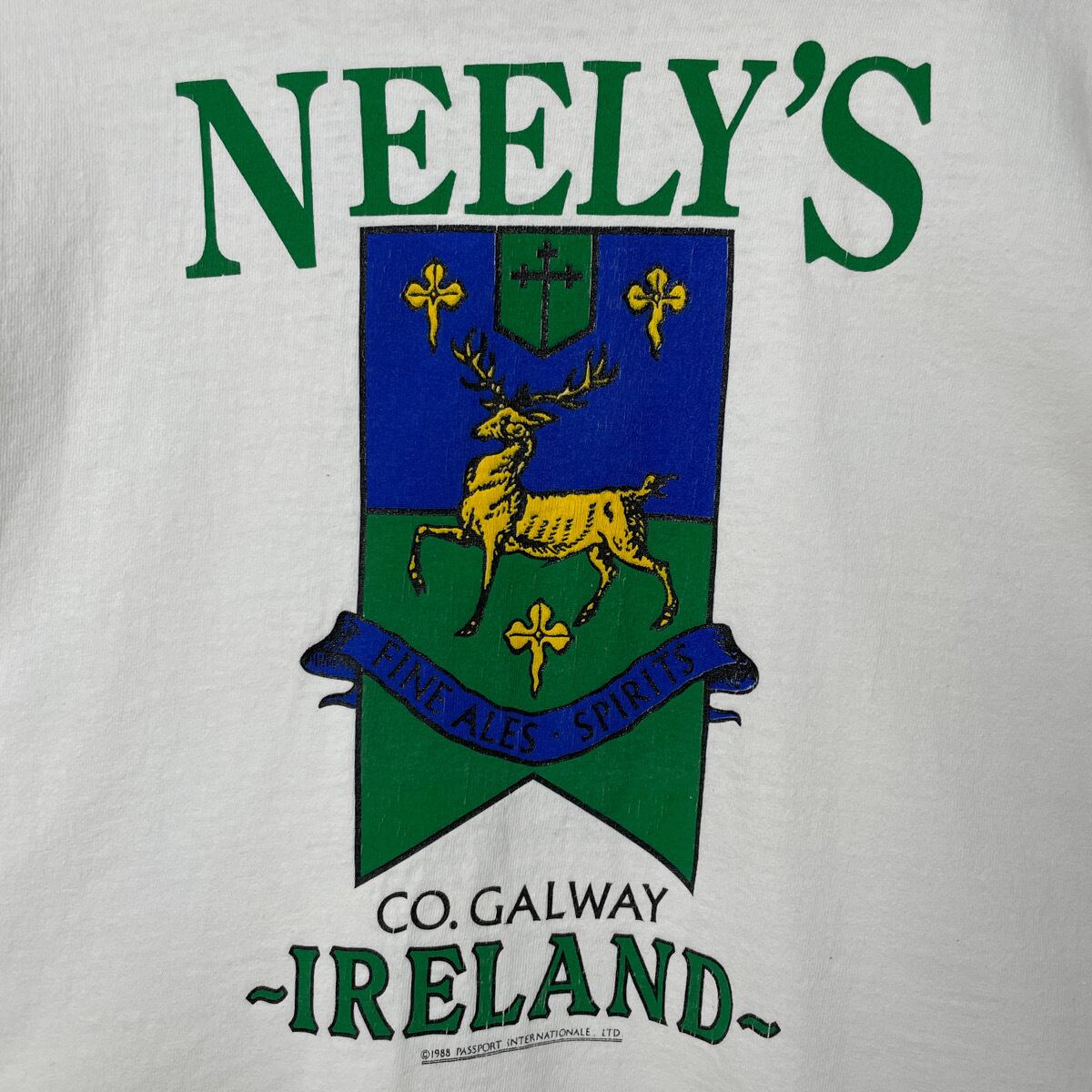 80s NEELY'S ビール Tシャツ 古着 ヴィンテージ アイルランド 酒 企業ロゴ エンブレム グラフィック プリント 80年代 ビンテージ シングルステッチ コットン メンズ XL 24082401