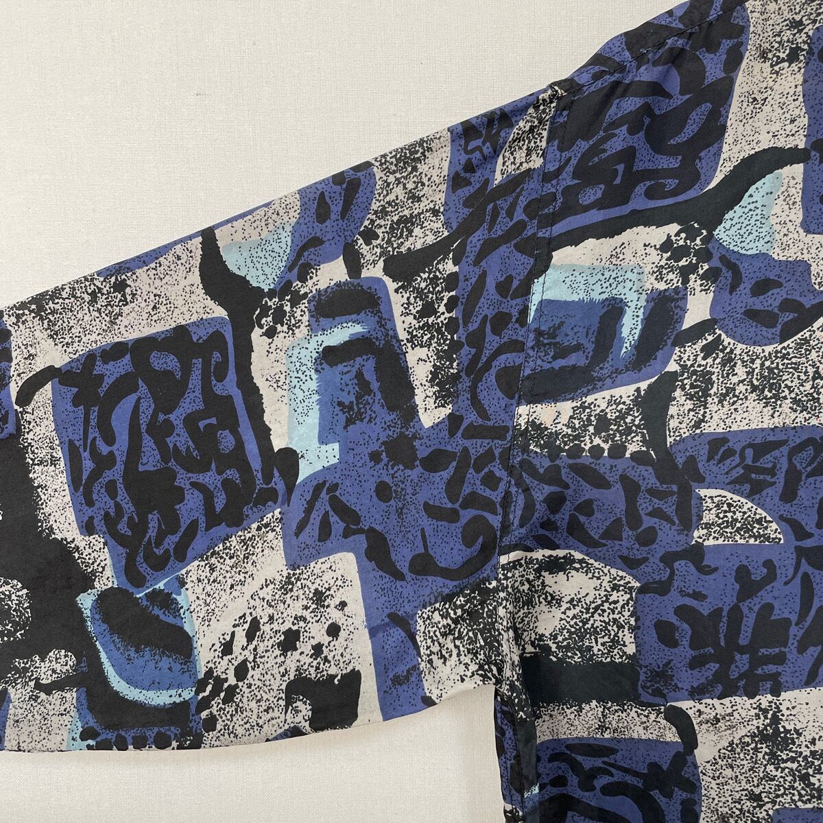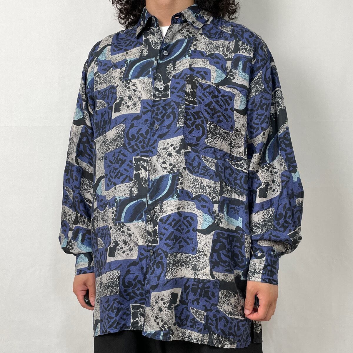 90s ROBERT STOCK 総柄 シルクシャツ 古着 ヴィンテージ 長袖シャツ シルク 青 ブルー 90年代 ビンテージ 柄シャツ ロバートストック メンズ M 24090704