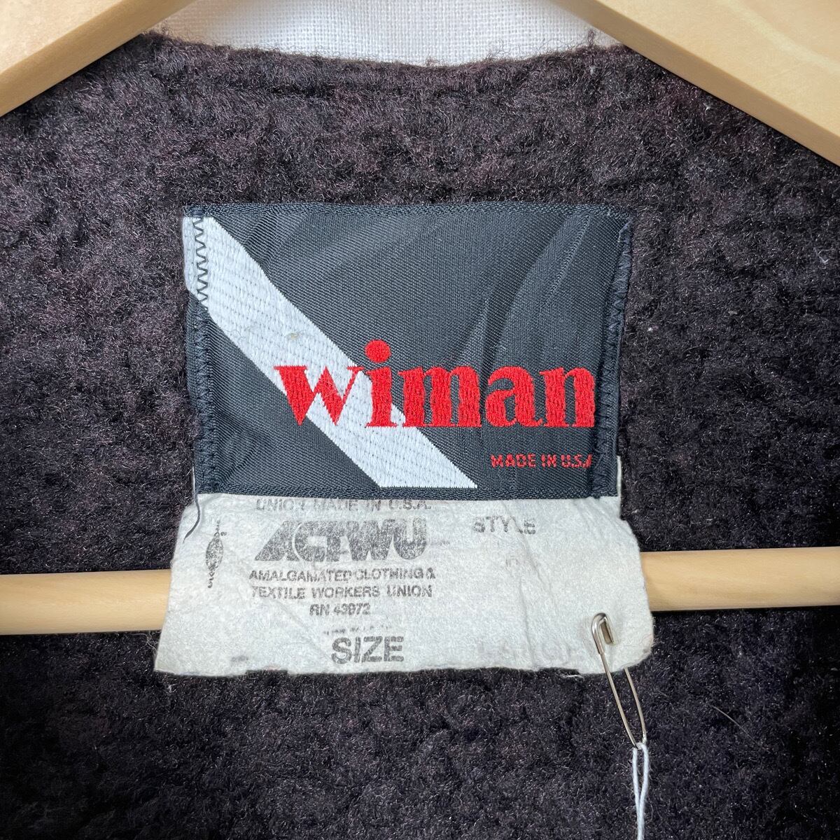 70s USA製 wiman フェイクムートン 裏ボア ベスト 古着 ヴィンテージ ジップアップ コットン 70年代 ビンテージ 茶 ブラウン メンズ L 24102701