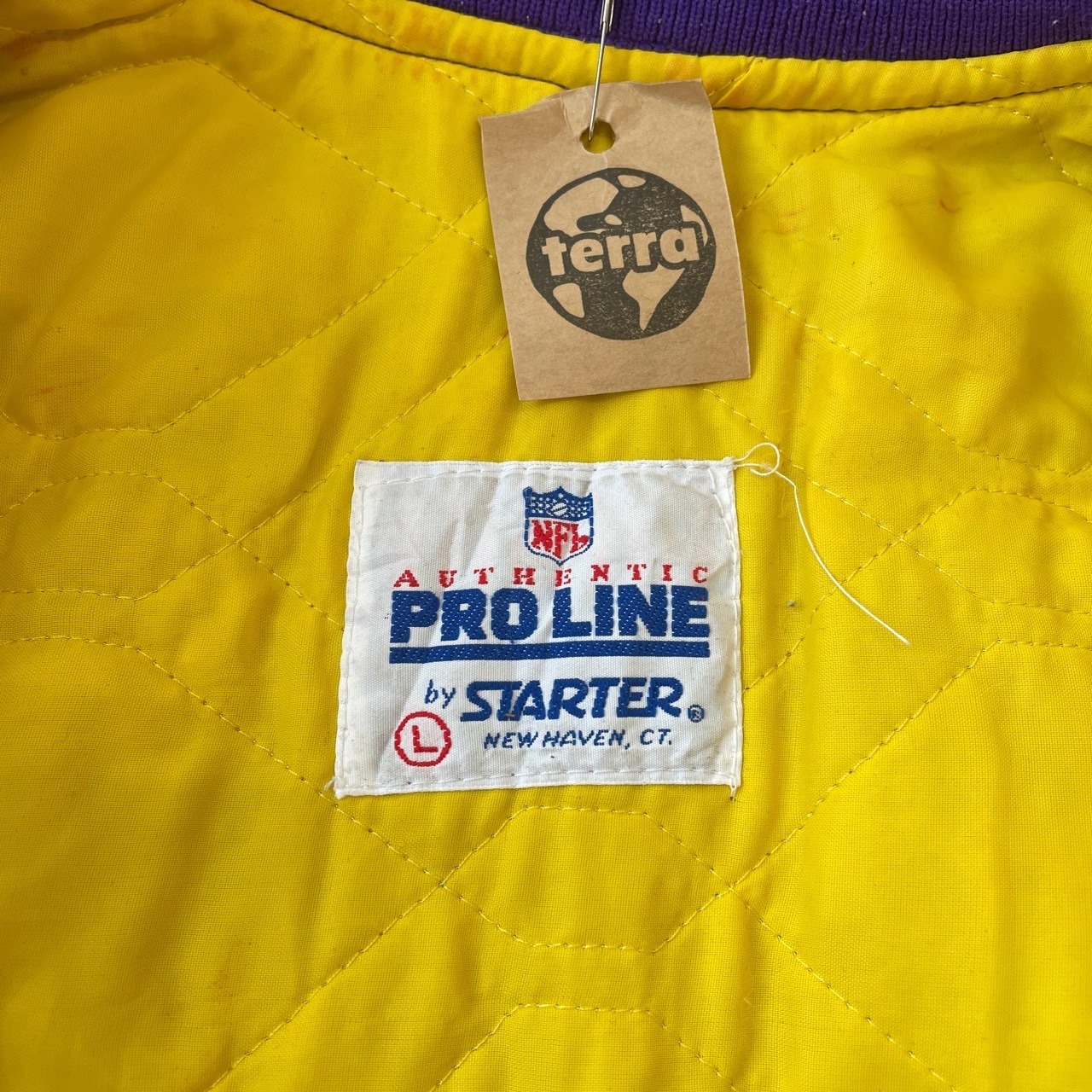 90s STARTER NFL バイキングス スタジャン 古着 ヴィンテージ Vikings アメフト チームロゴ 紫 パープル スターター ナイロン 中綿 ビンテージ 90年代 USA製 メンズ L 25021506