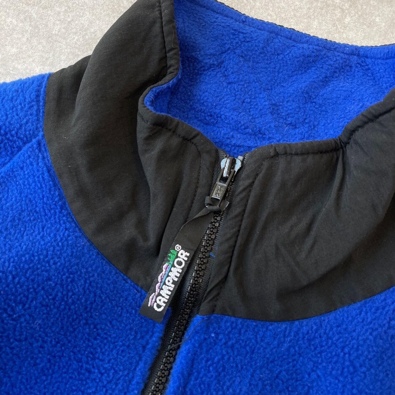 90s CAMPMOR フリースジャケット 古着 青 ブルー ヴィンテージ 90年代 ビンテージ フルジップ ツートン ラグラン メンズ L 25021801
